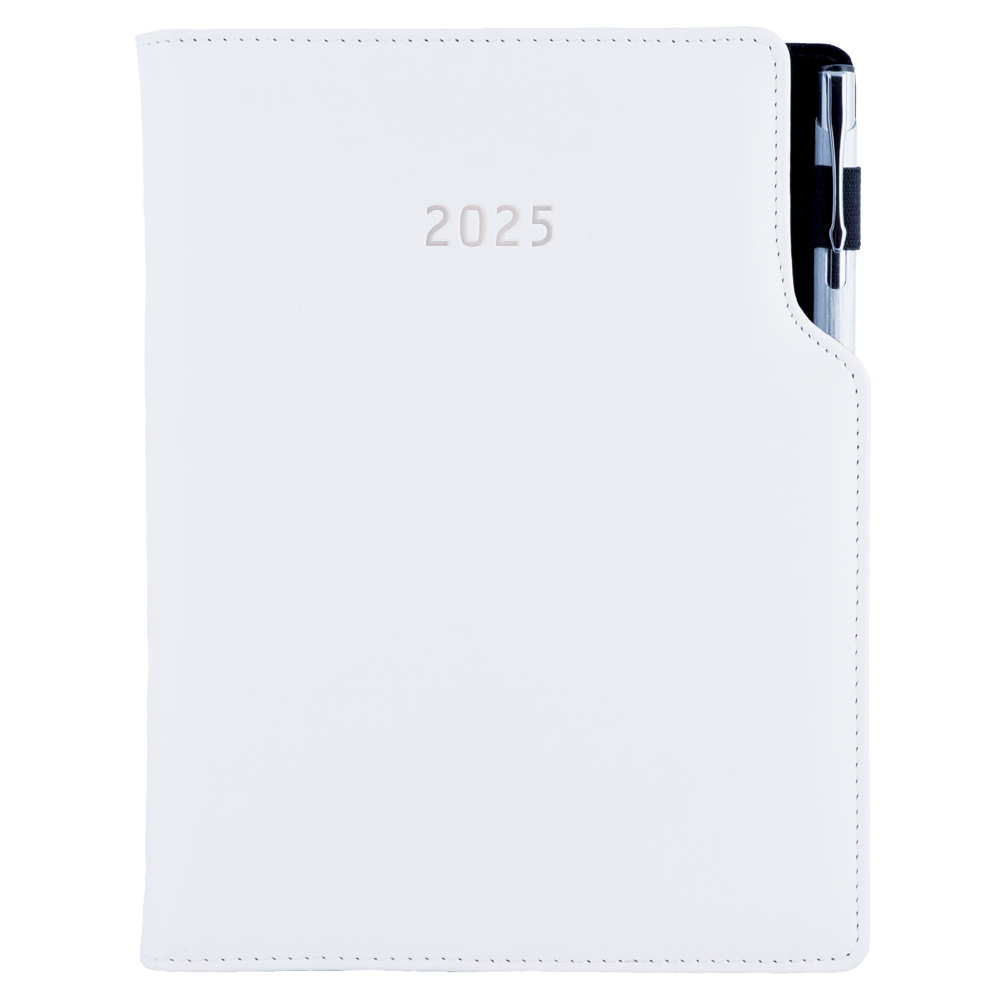 Tagebuch GEP mit Stift – täglich A5 2025 Tschechisch - weiß/weißer Besatz