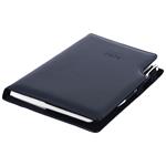Tagebuch enthält: runde Abreißecken, weißes Lesezeichen und Kuli