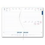 Tagebuch enthält: runde Abreißecken, weißes Lesezeichen und Kuli