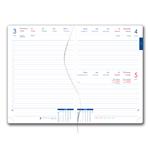 Format: A5 Blockgröße: 143 x 205 mm Umfang: 350 Seiten Bindung: genäht V8 (gewebter Faden) Kalender: täglich tschechische Namen Sprachen: CZ, SK, EN, DE, RU Farbe des Blocks: weiss Schriftfarbe: blau und rot Material: Vollpappe mit glattem Kunstle