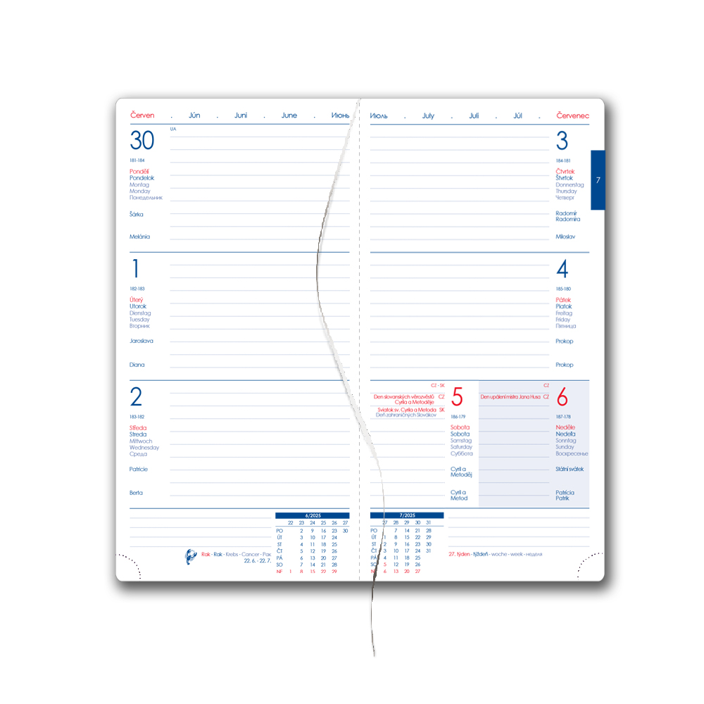 Das Kalendarium ist für Prägung, Farbprägung oder Druck geeignet.