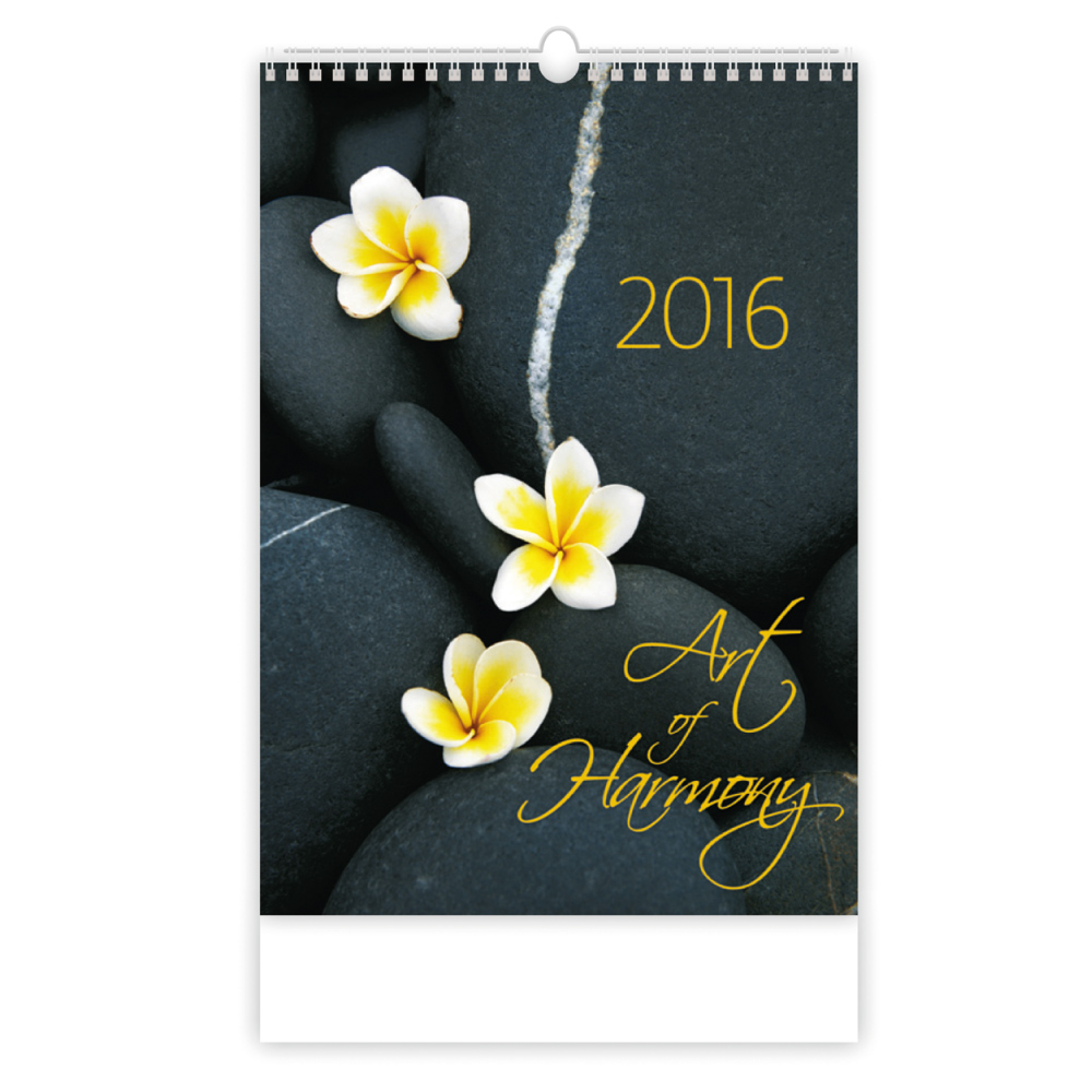 Nástěnný kalendář Art of Harmony 2016 rozměr - 31,5 x 45 cm kalendárium - měsíční mezinárodní rozsah kalendáře - 14 stran vazba: dvojitá spirála plocha pro potisk - 31,5 x 7 cm