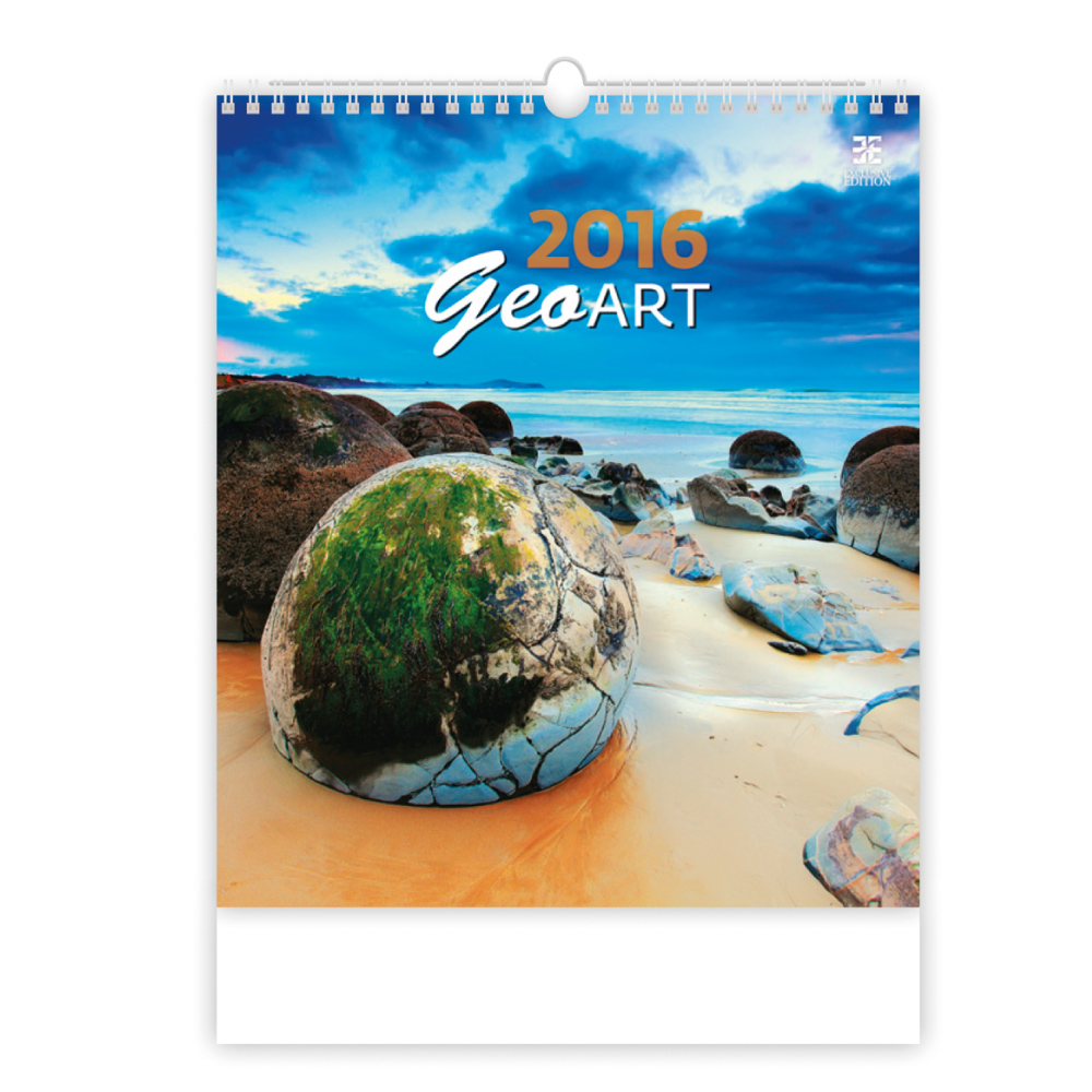 Nástěnný kalendář Geo Art 2016 rozměr - 45 x 52 cm kalendárium - měsíční mezinárodní rozsah kalendáře - 14 stran vazba: dvojitá spirála plocha pro potisk - 45 x 7 cm