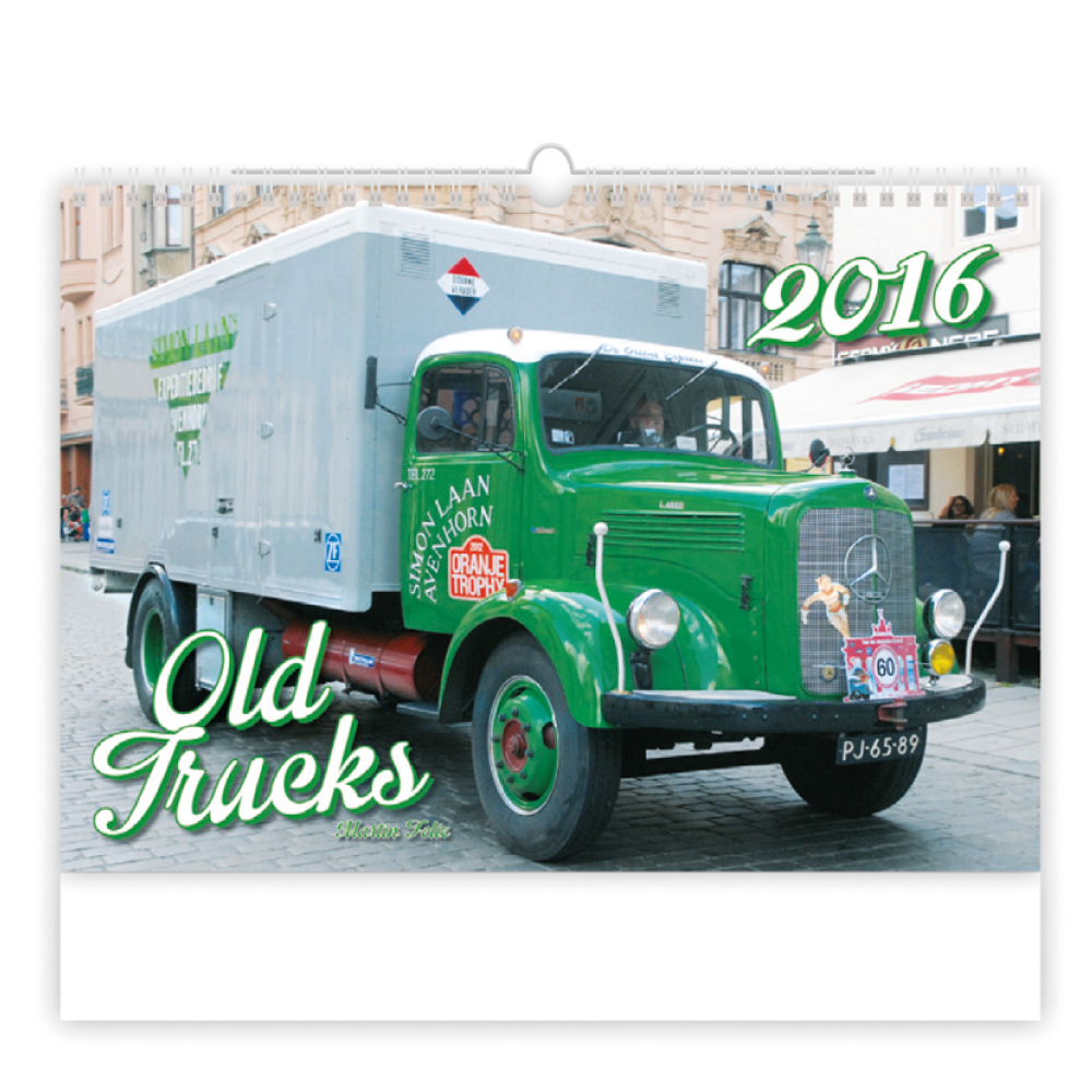 Nástěnný kalendář Old Trucks 2016 rozměr - 45 x 31,5 cm kalendárium - měsíční mezinárodní rozsah kalendáře - 14 stran vazba: dvojitá spirála plocha pro potisk - 45 x 7 cm