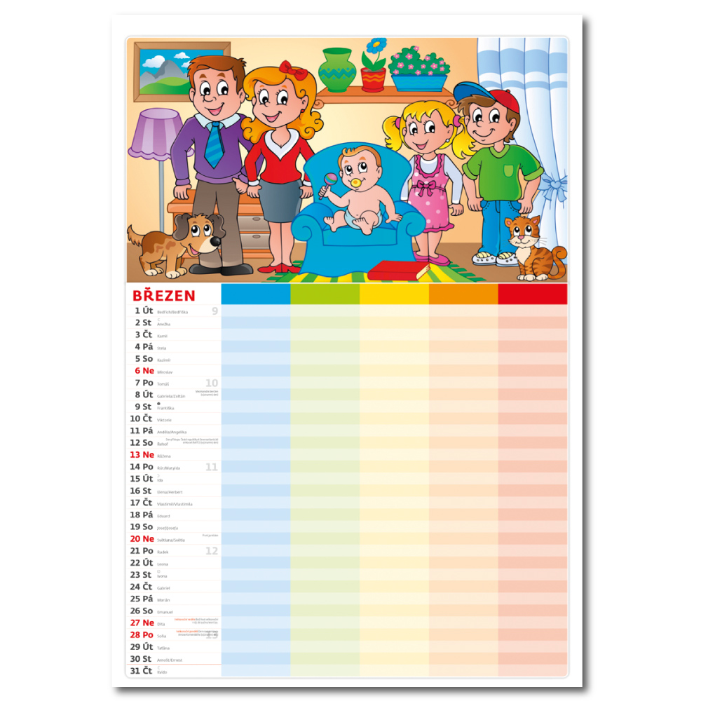Nástěnný kalendář Rodinný plánovač 2016 rozměr - 31,5 x 45 cm kalendárium - české měsíční jmenné plánovací rozsah kalendáře - 14 stran vazba: dvojitá spirála plocha pro potisk - 31,5 x 7 cm