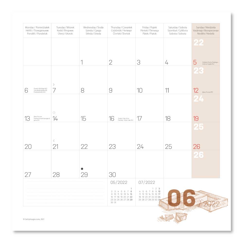 Kalendárium: 16 měsíční kalendář, 6jazyčné (CZ, SK, PL, HU, EN, RU)