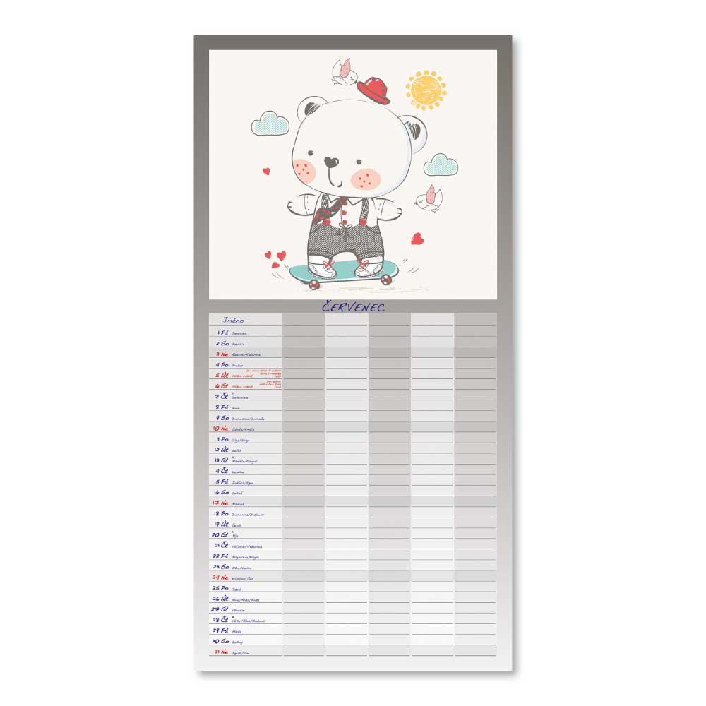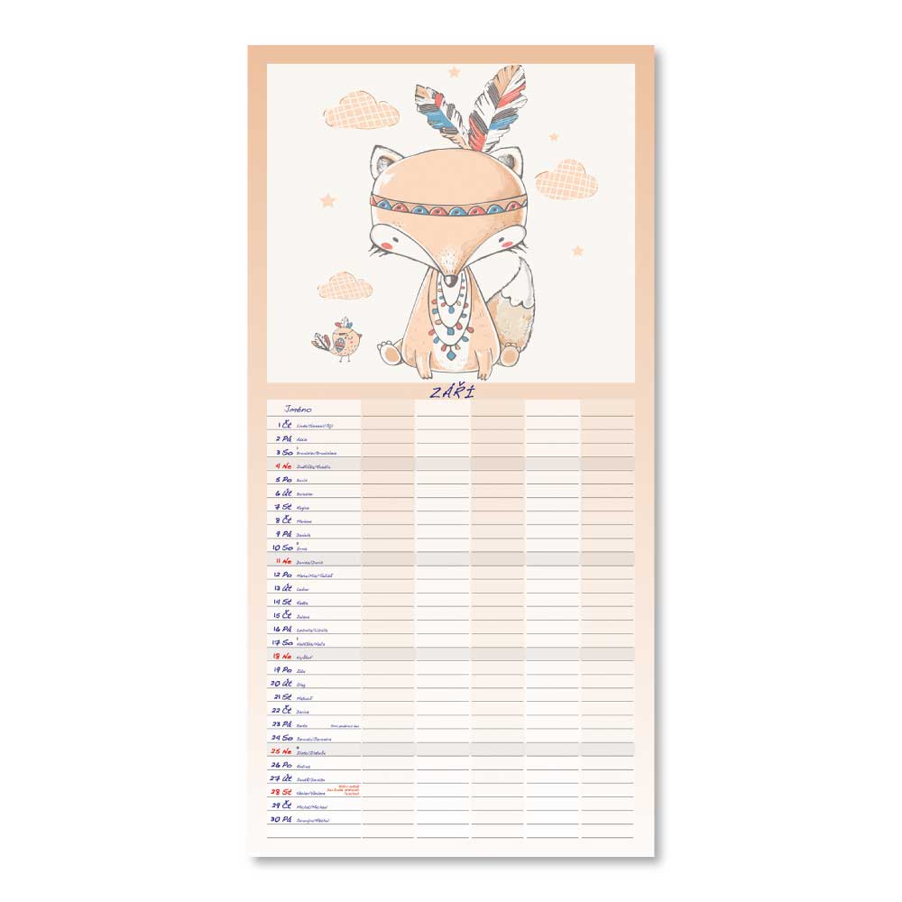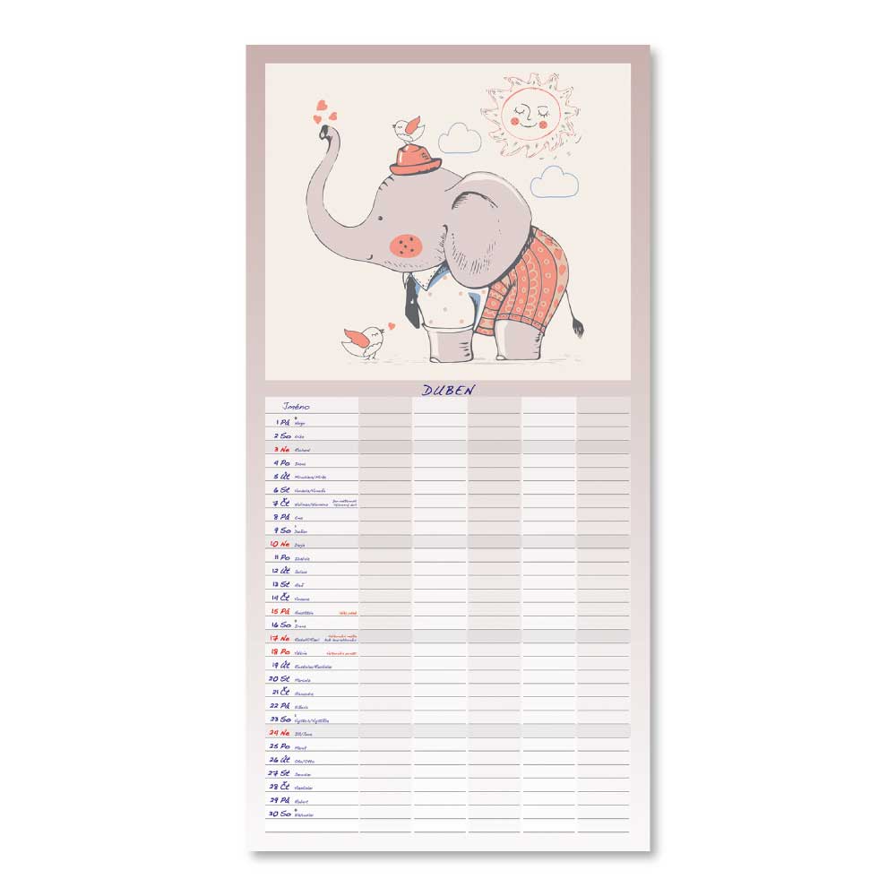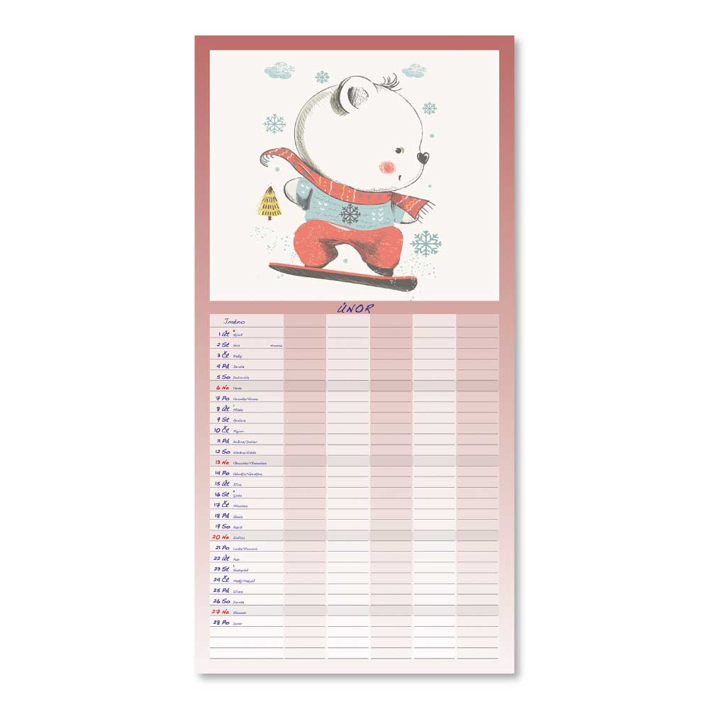 Rozměr: 31,5 x 63 cmKalendárium: české měsíční jmennéVazba: Twin wireRozsah kalendáře: 14 listů