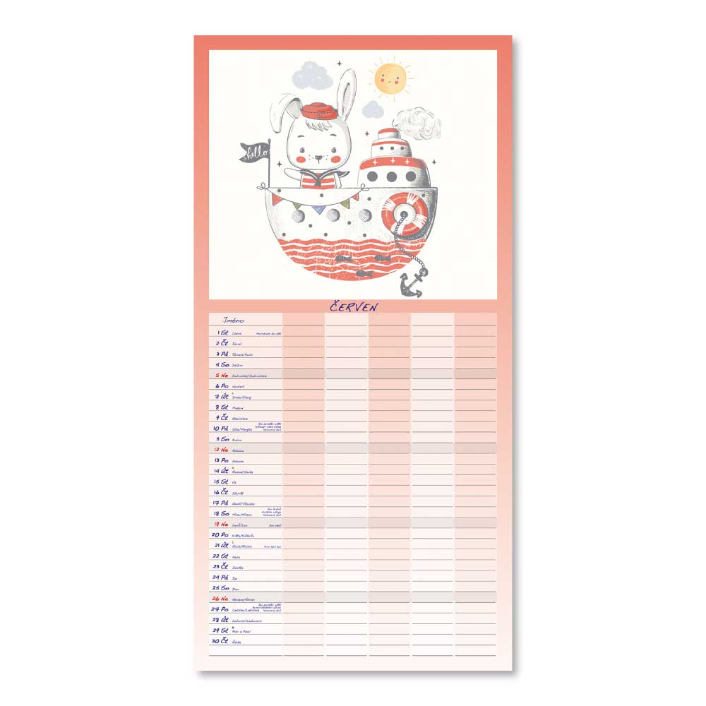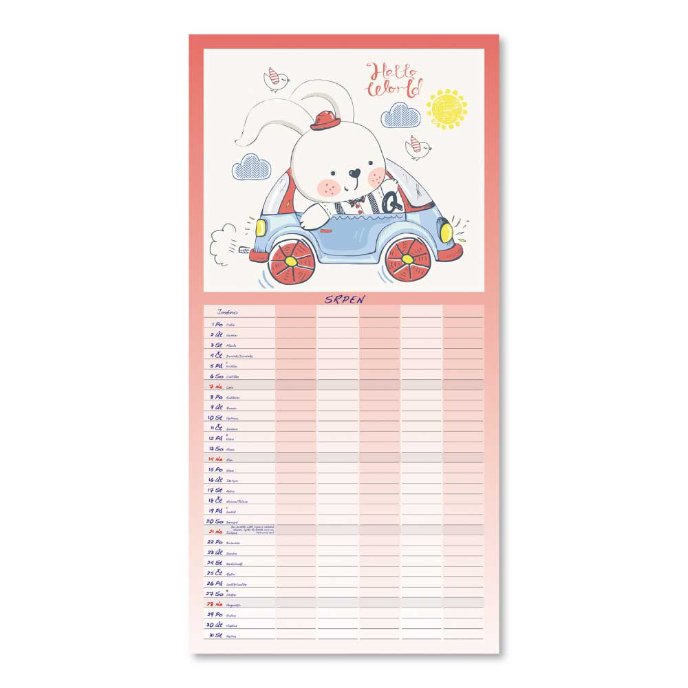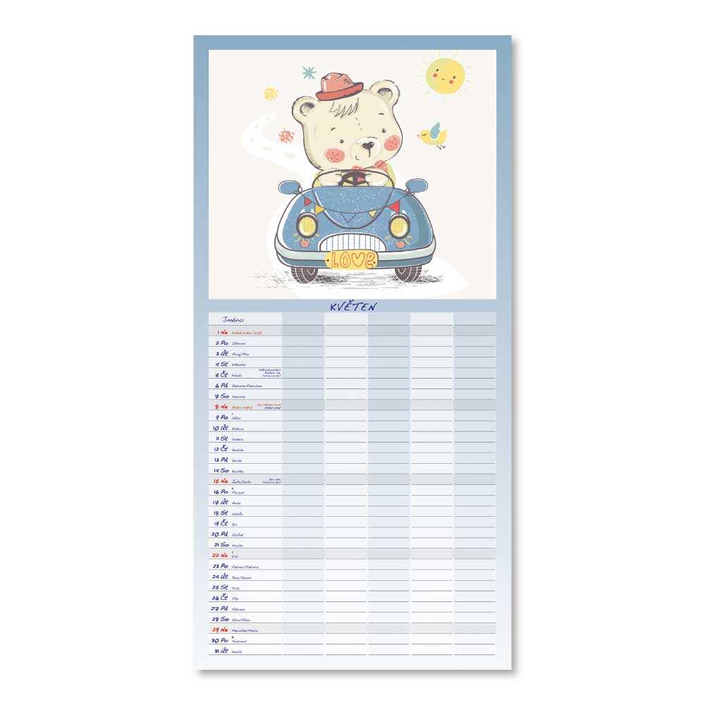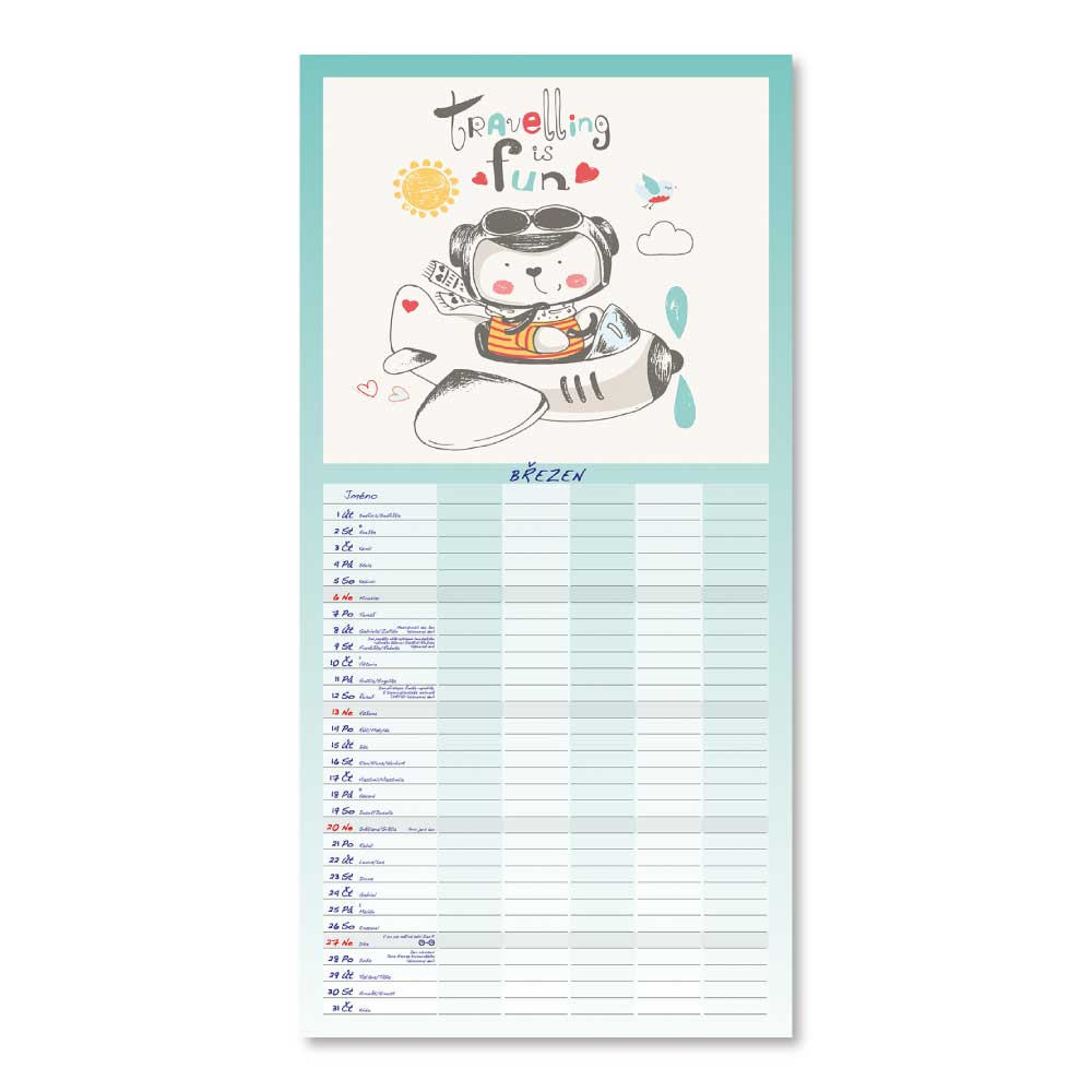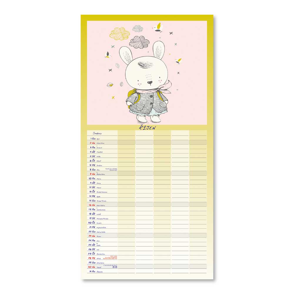 Rozměr: 31,5 x 63 cmKalendárium: české měsíční jmennéVazba: Twin wireRozsah kalendáře: 14 listů