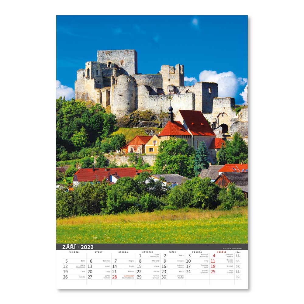 Rozměr: 31,5 x 45 cmKalendárium: české měsíční jmennéRozsah kalendáře: 14 listůVazba: Twin wirePlocha pro potisk: 31,5 x 7 cm