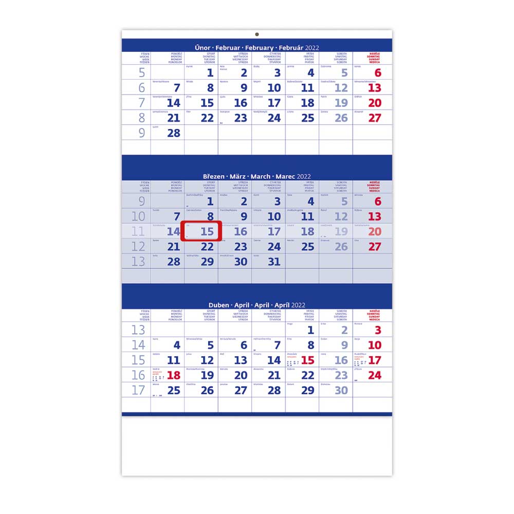 Wall Calendar 2022 - Threemonths blue