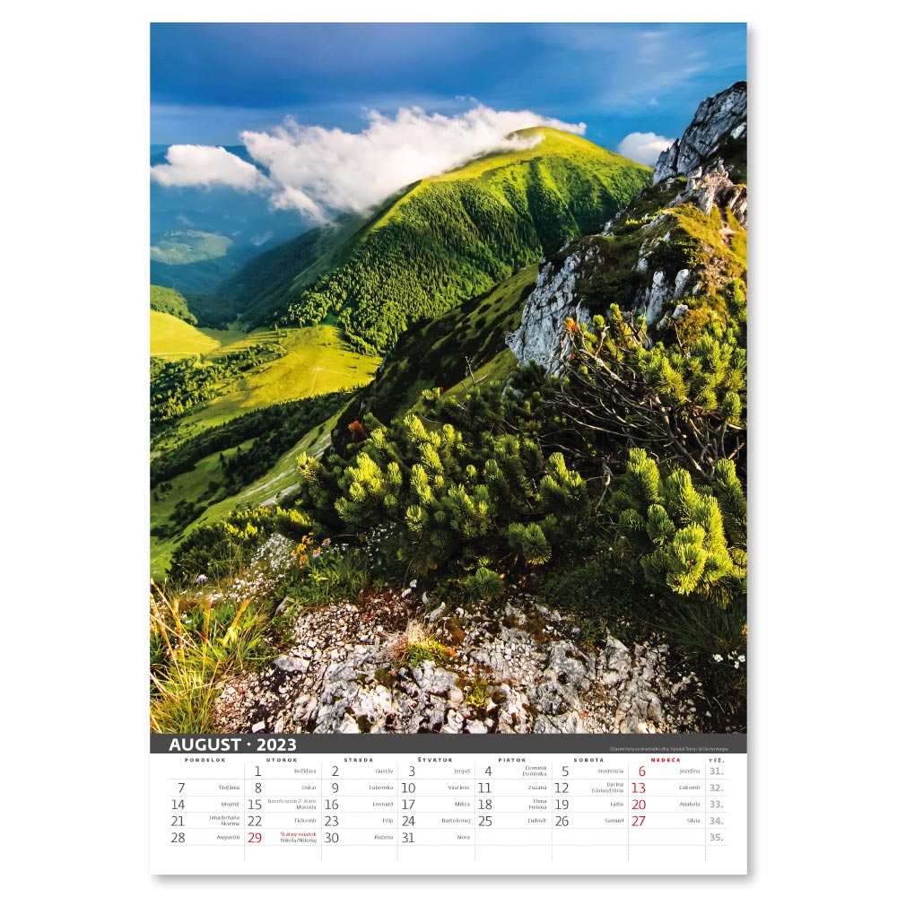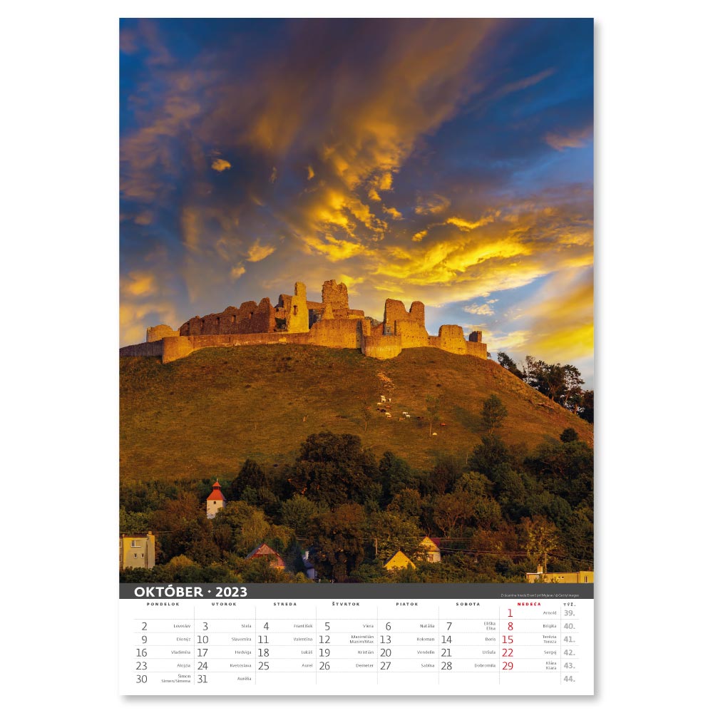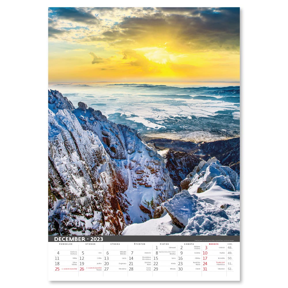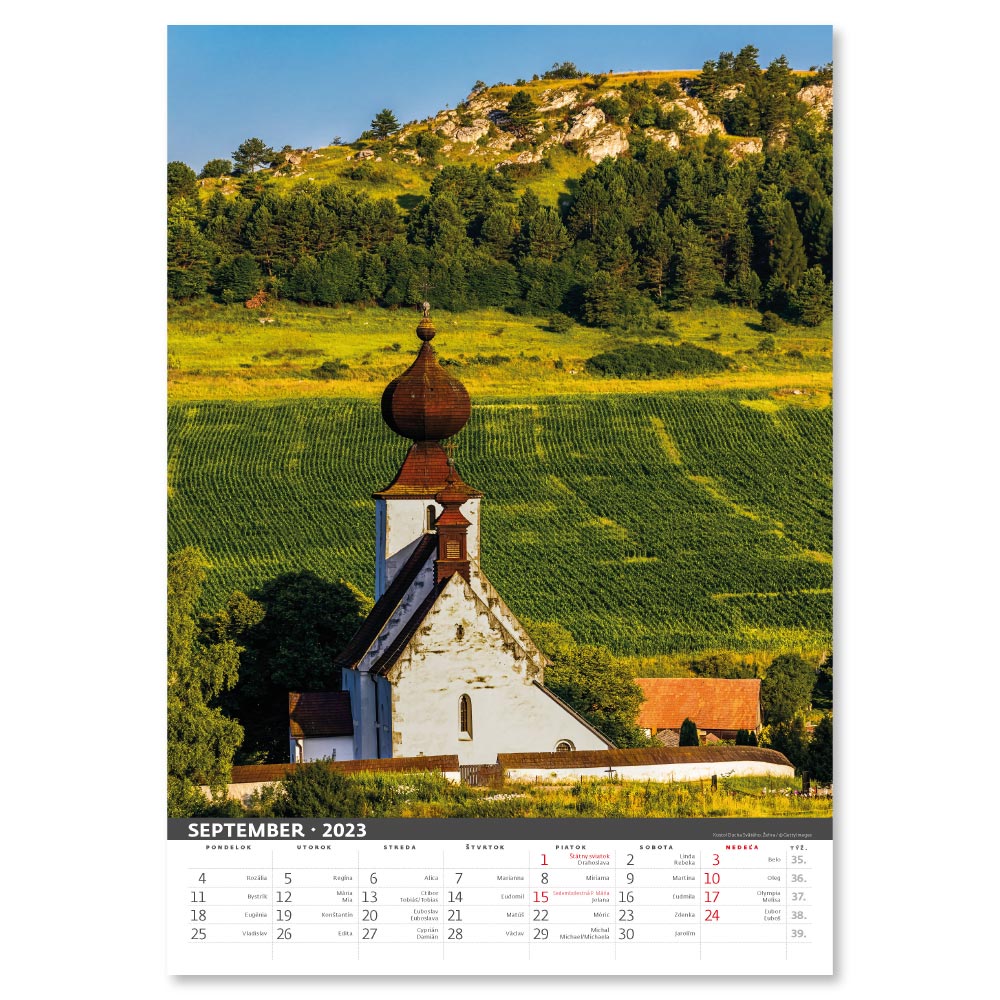 Rozměr: 31,5 x 45 cmKalendárium: slovenské měsíční jmennéRozsah kalendáře: 14 listůVazba: Twin wirePlocha pro potisk: 31,5 x 7 cm