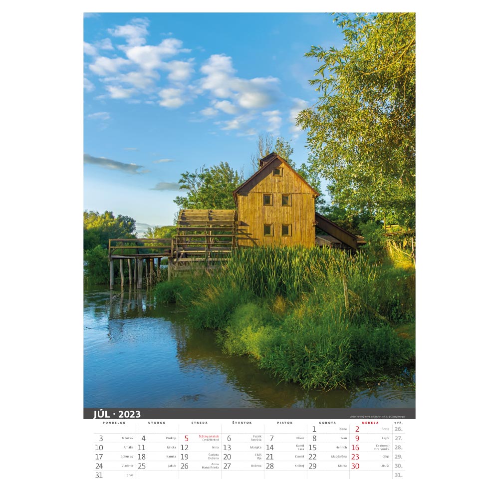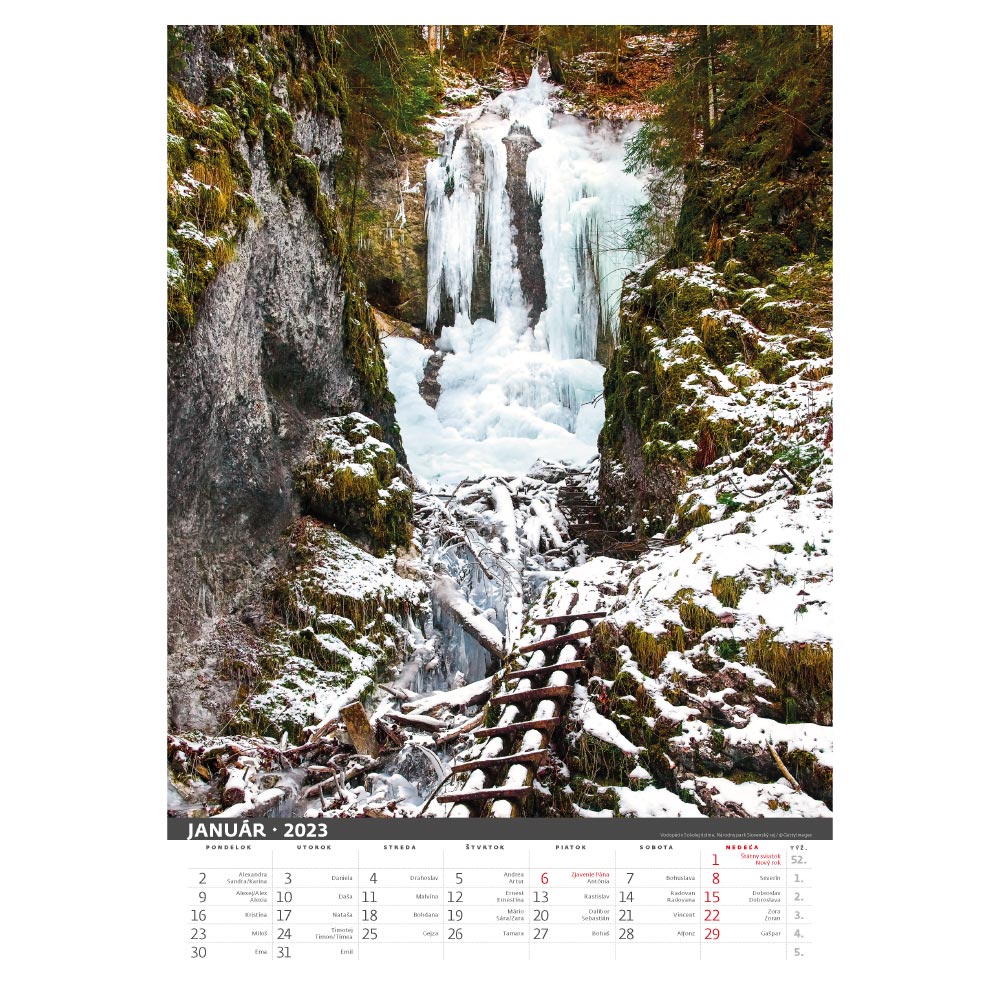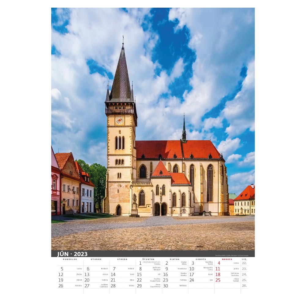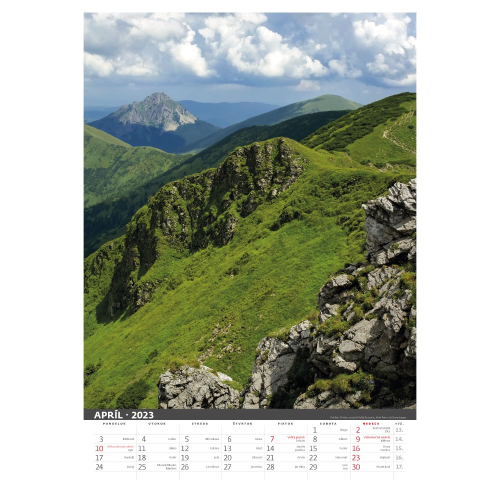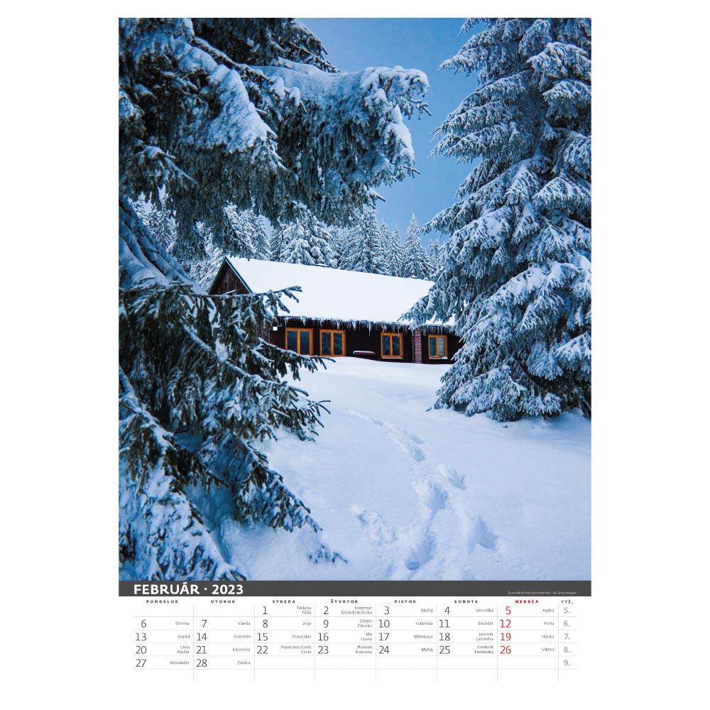 Rozměr: 31,5 x 45 cmKalendárium: slovenské měsíční jmennéRozsah kalendáře: 14 listůVazba: Twin wirePlocha pro potisk: 31,5 x 7 cm