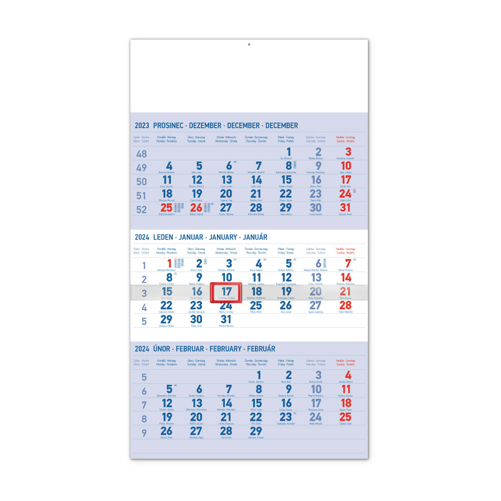 Nástěnný kalendář 2024 3měsíční standard - modrý CZ