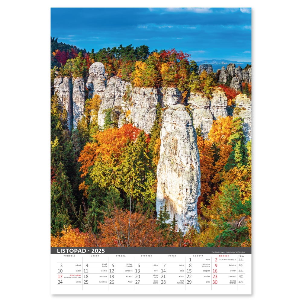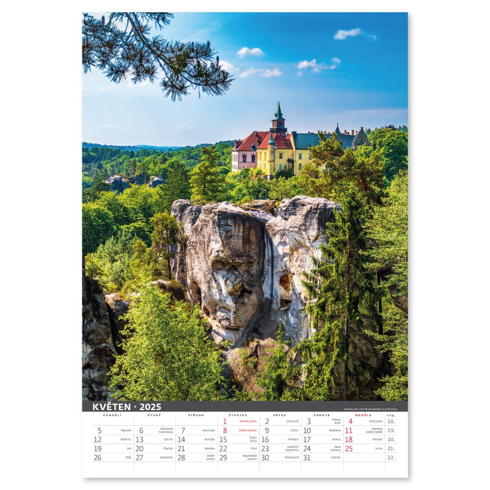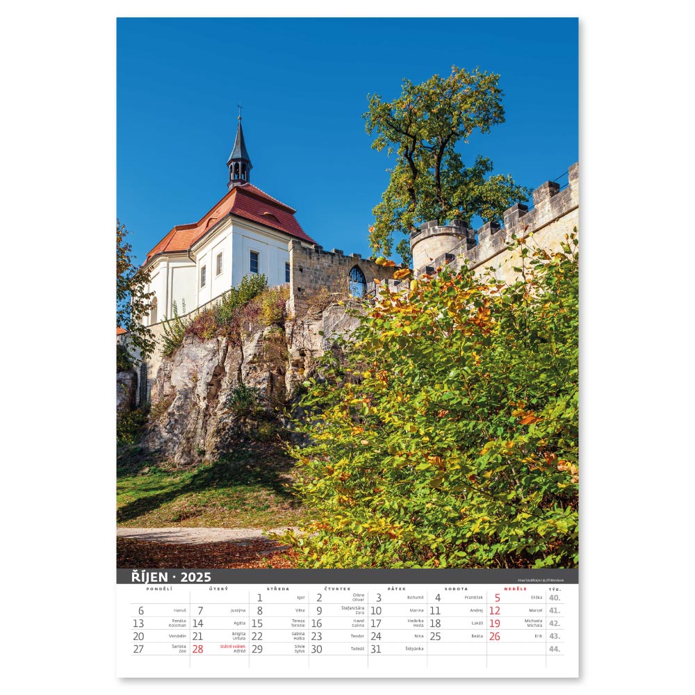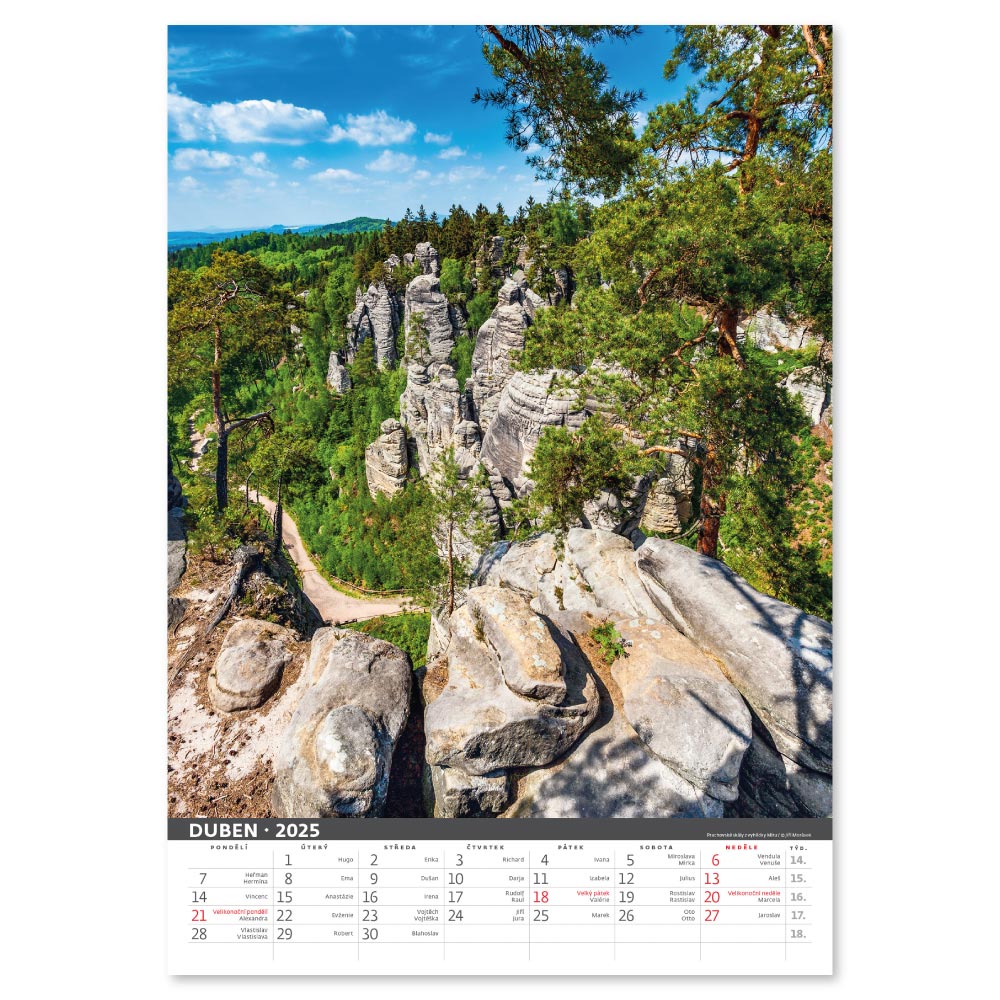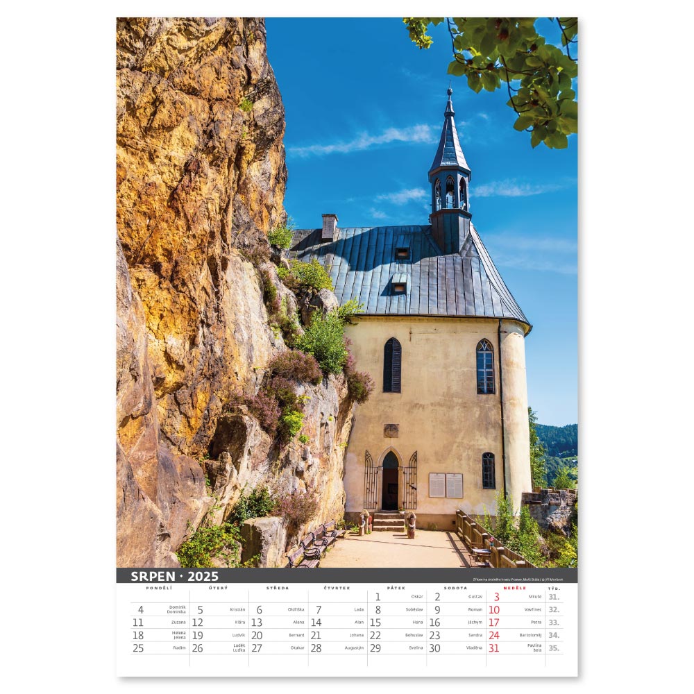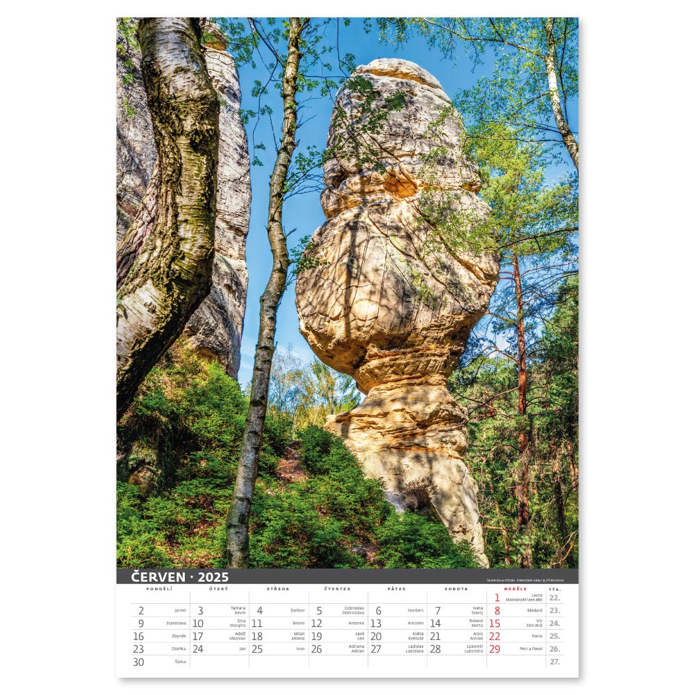 Rozměr: 31,5 x 45 cmKalendárium: české měsíční jmennéRozsah kalendáře: 14 listůVazba: Twin wirePlocha pro potisk: 31,5 x 7 cm