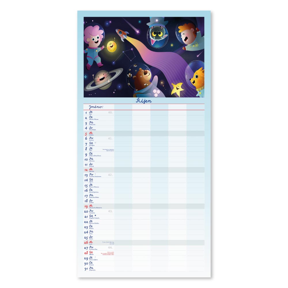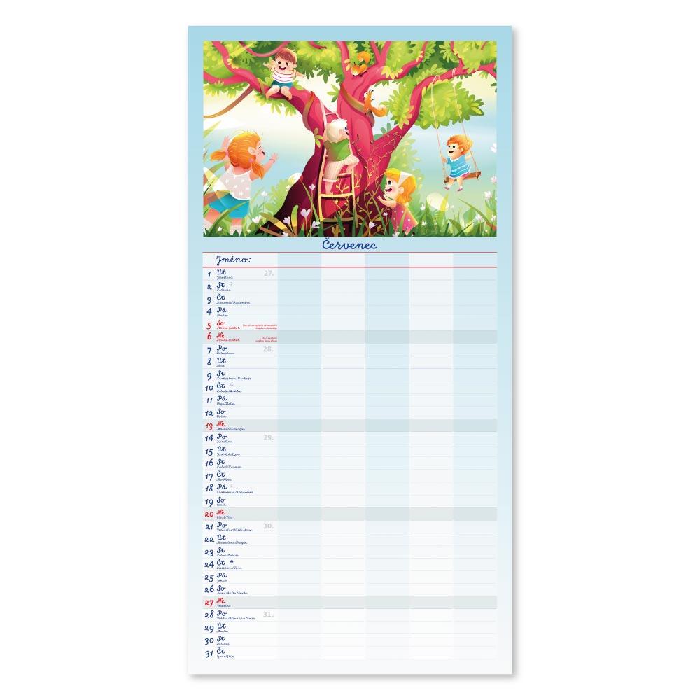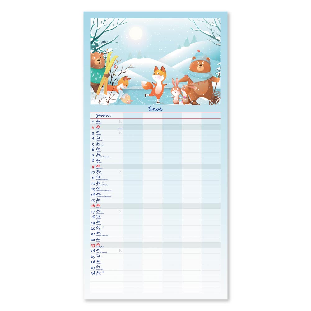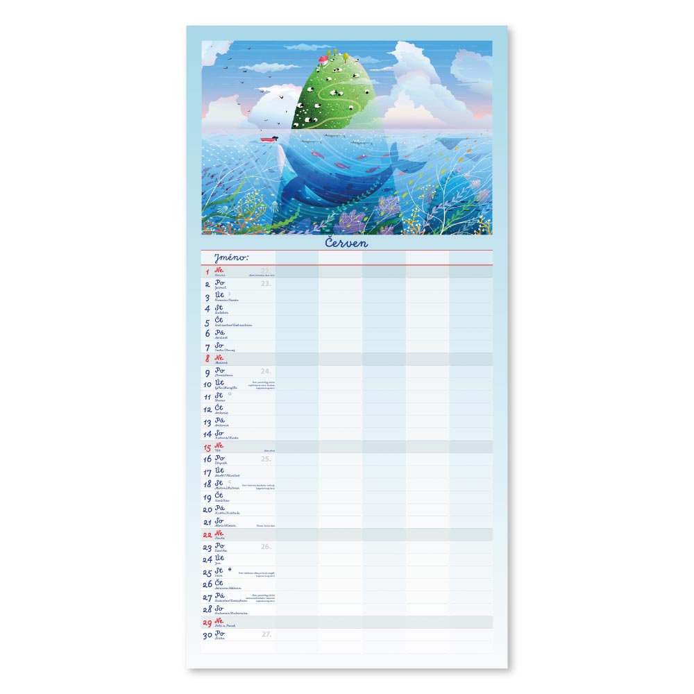 Rozměr: 31,5 x 63 cmKalendárium: české měsíční jmennéVazba: Twin wireRozsah kalendáře: 14 listů