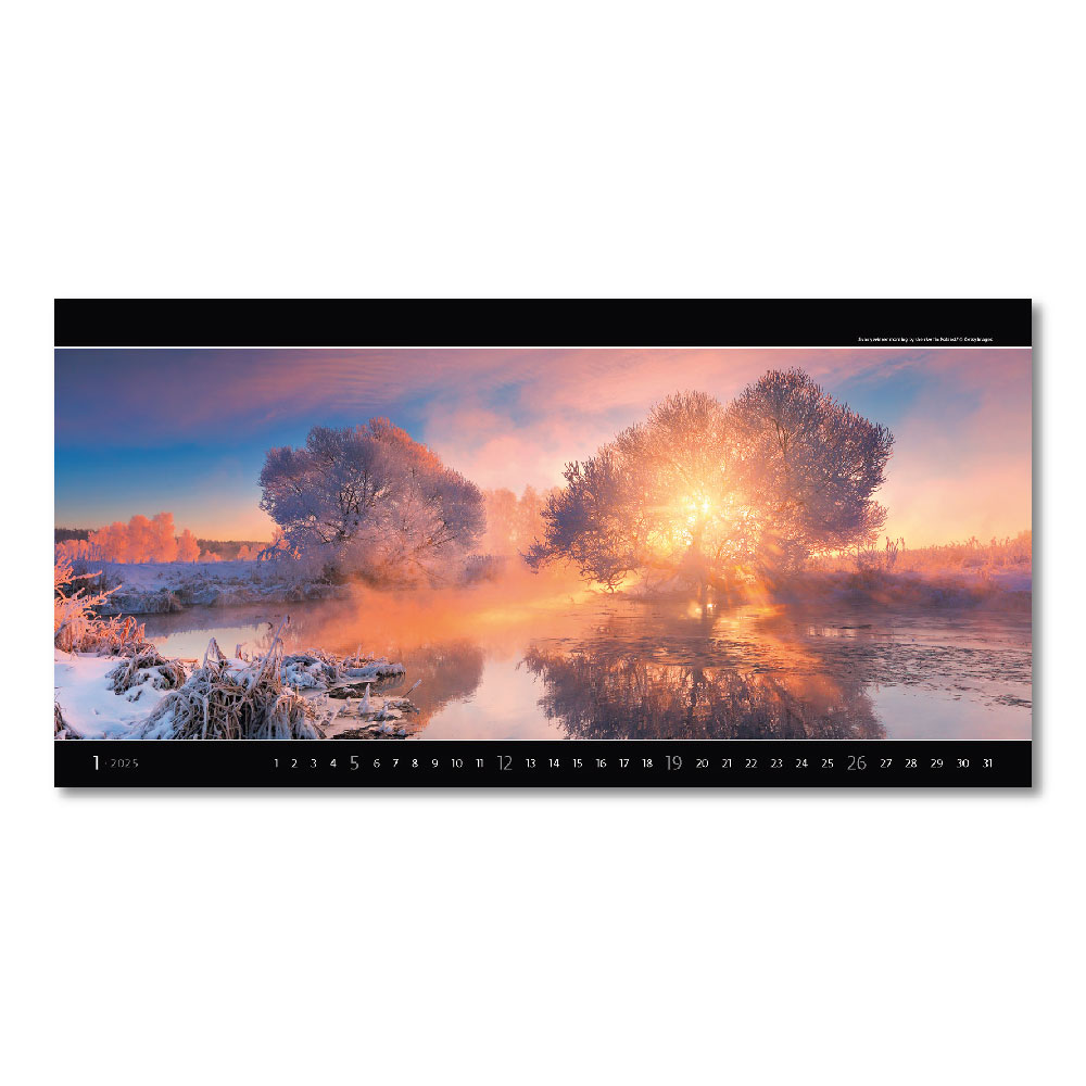 Rozměr: 63 x 31,5 cmKalendárium: měsíční mezinárodní Rozsah kalendáře: 14 listůVazba: Twin wirePlocha pro potisk: 63 x 7 cm