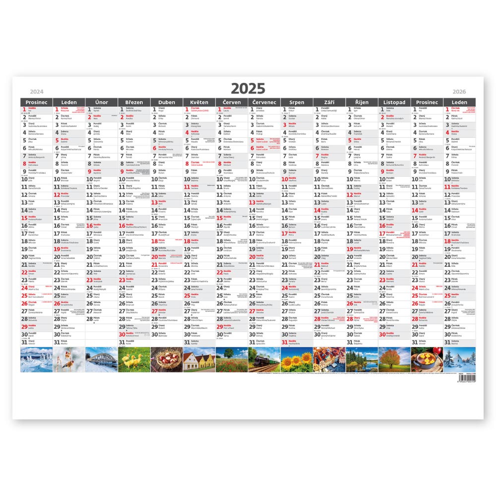 Rozměr: 88 x 64 cmKalendárium: slovenské roční jmennéRozsah kalendáře: 1 listPlocha pro potisk: 88 x 7 cm