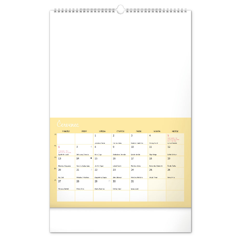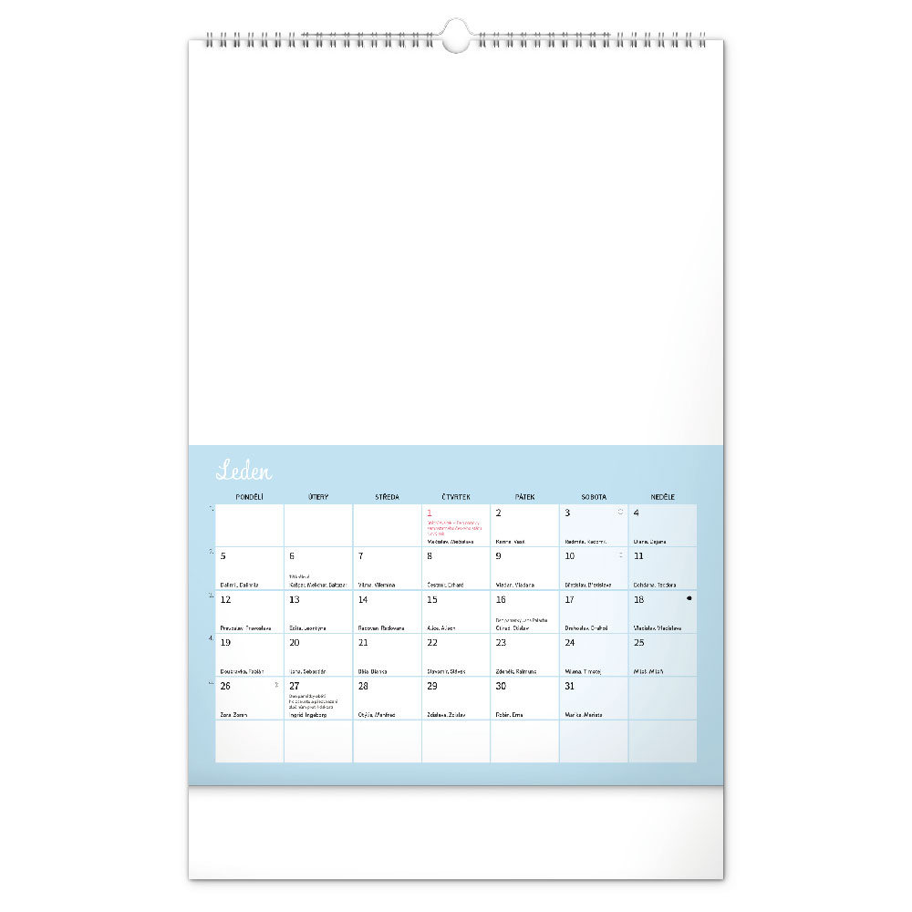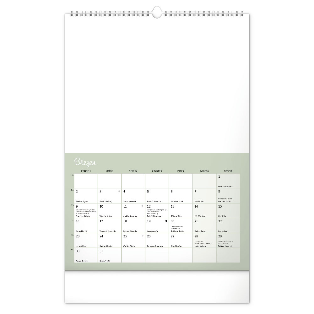 kalendář s českým kalendáriem, který dává prostor