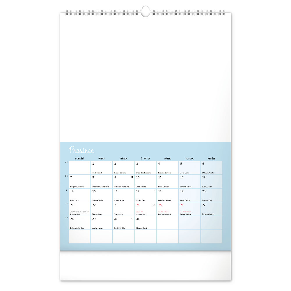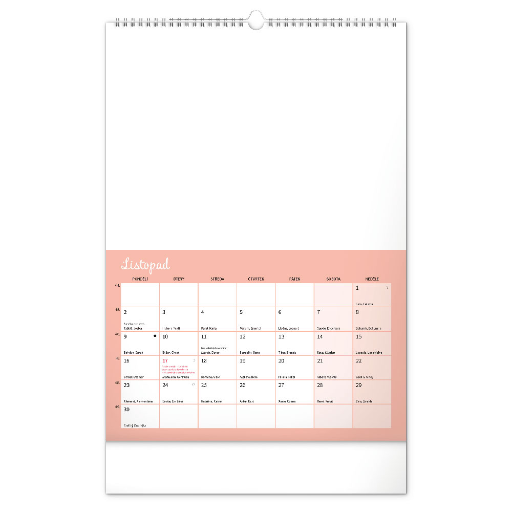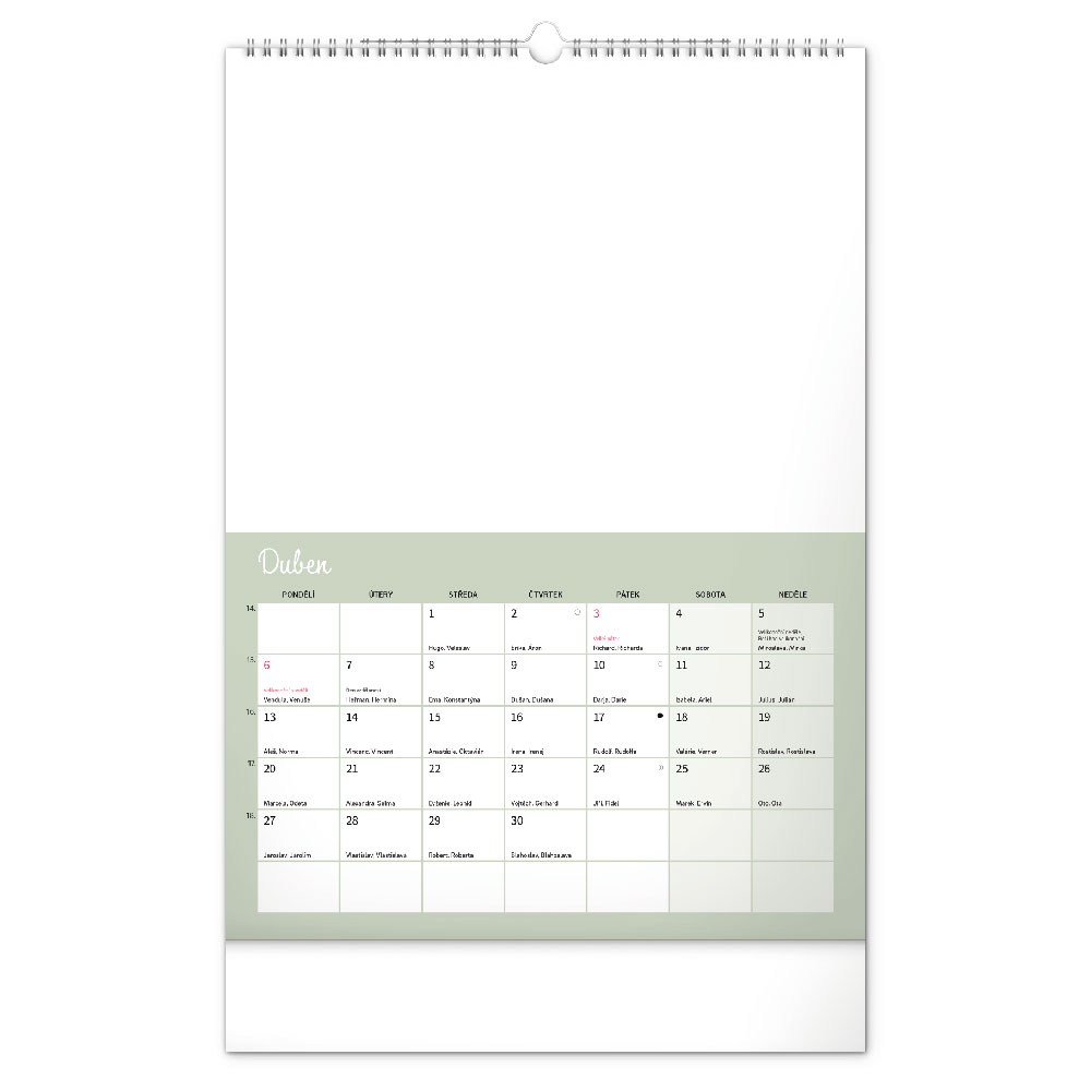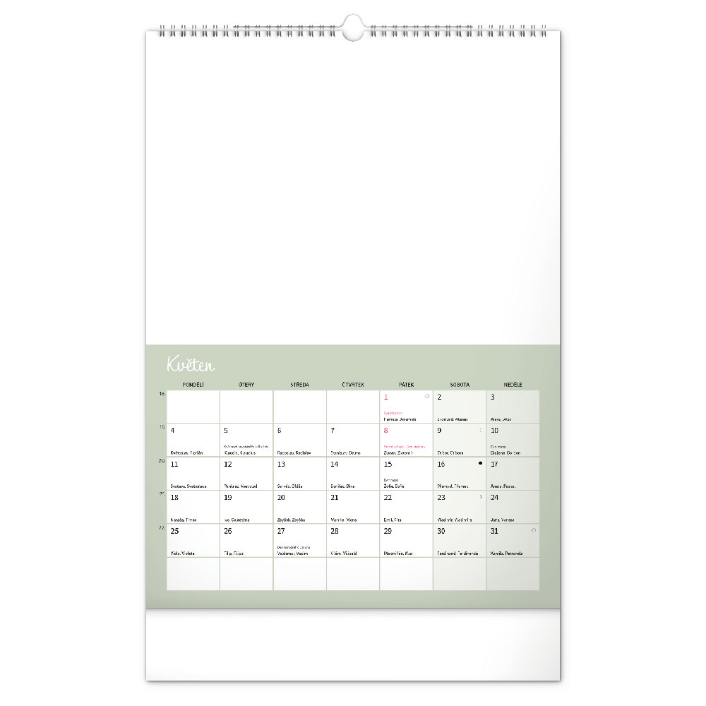 kalendář s českým kalendáriem, který dává prostor