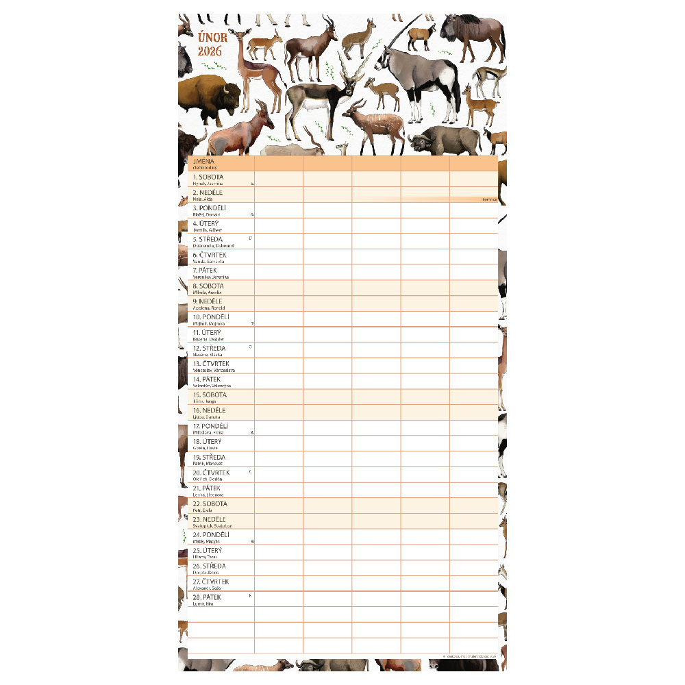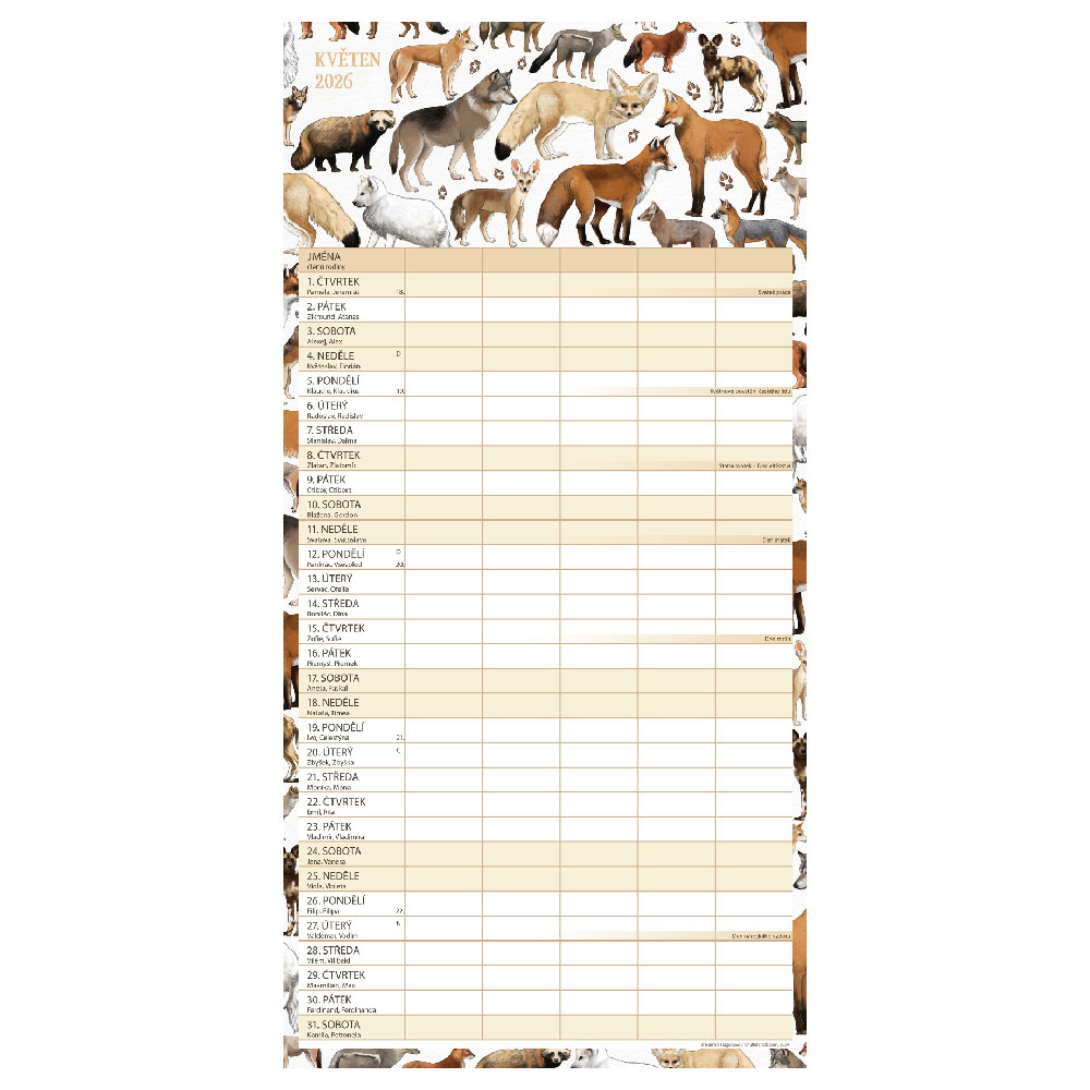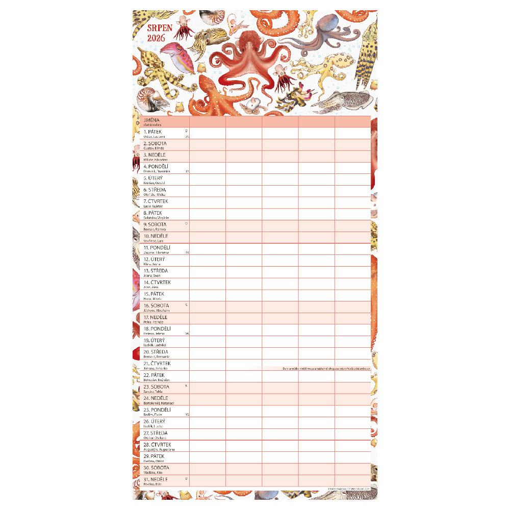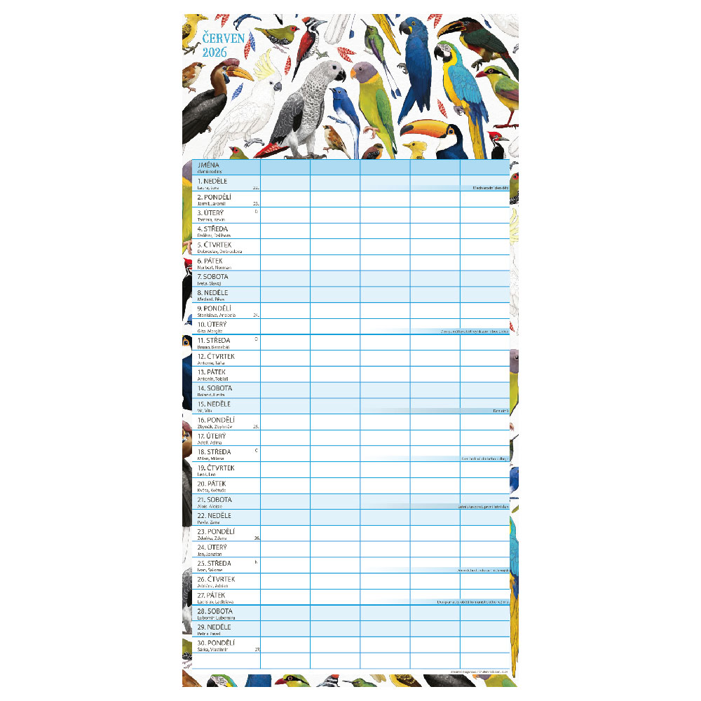 Rozměr: 30 x 30 cm (otevřený 30 x 60 cm)Kalendárium: českéRozsah kalendáře: 14 stranVazba: šitá V1