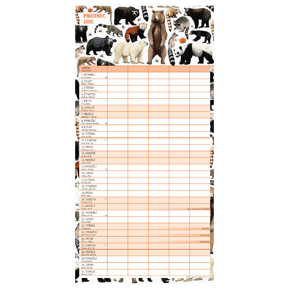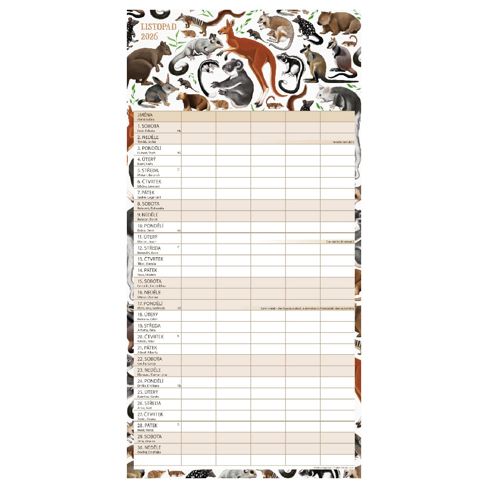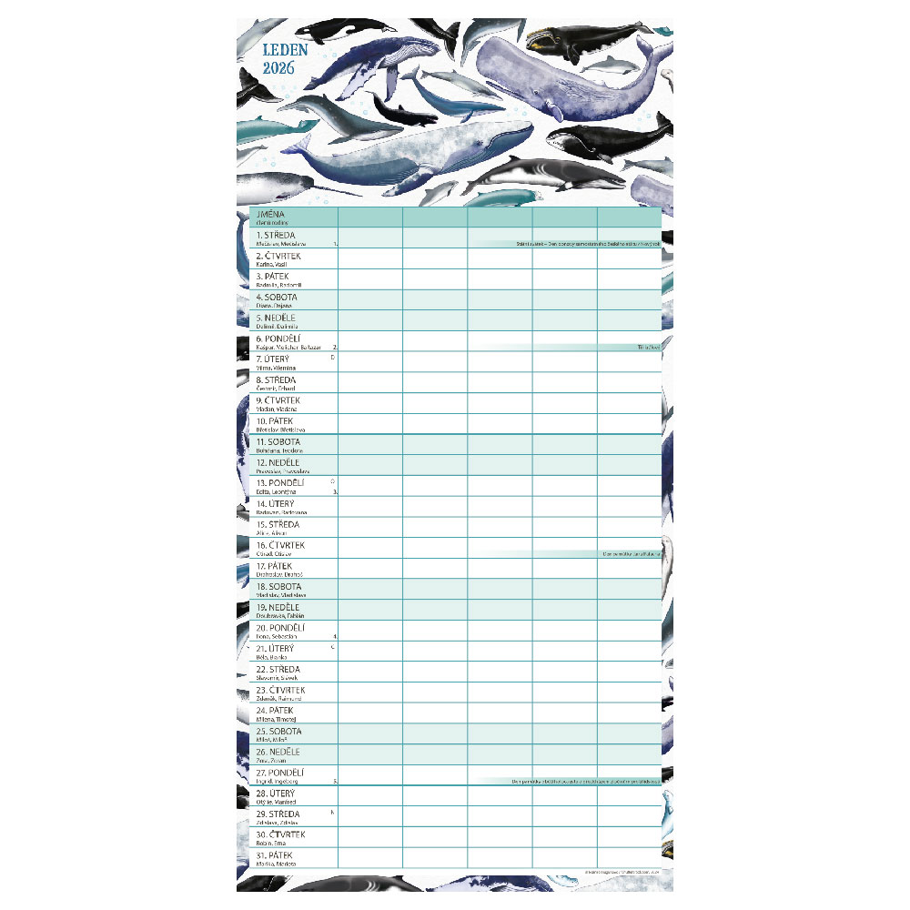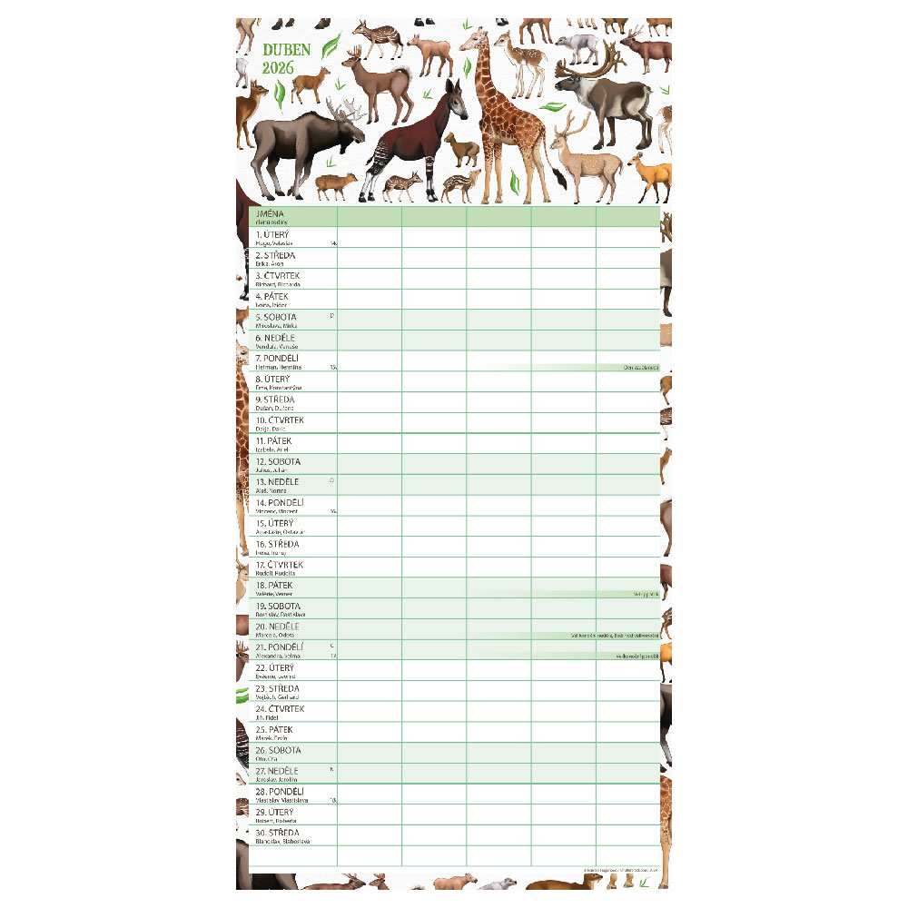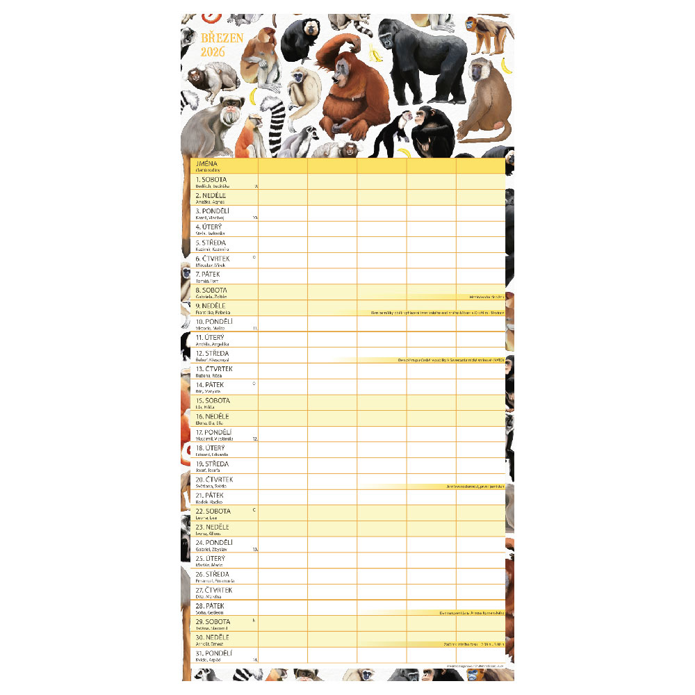 Rozměr: 30 x 30 cm (otevřený 30 x 60 cm)Kalendárium: českéRozsah kalendáře: 14 stranVazba: šitá V1
