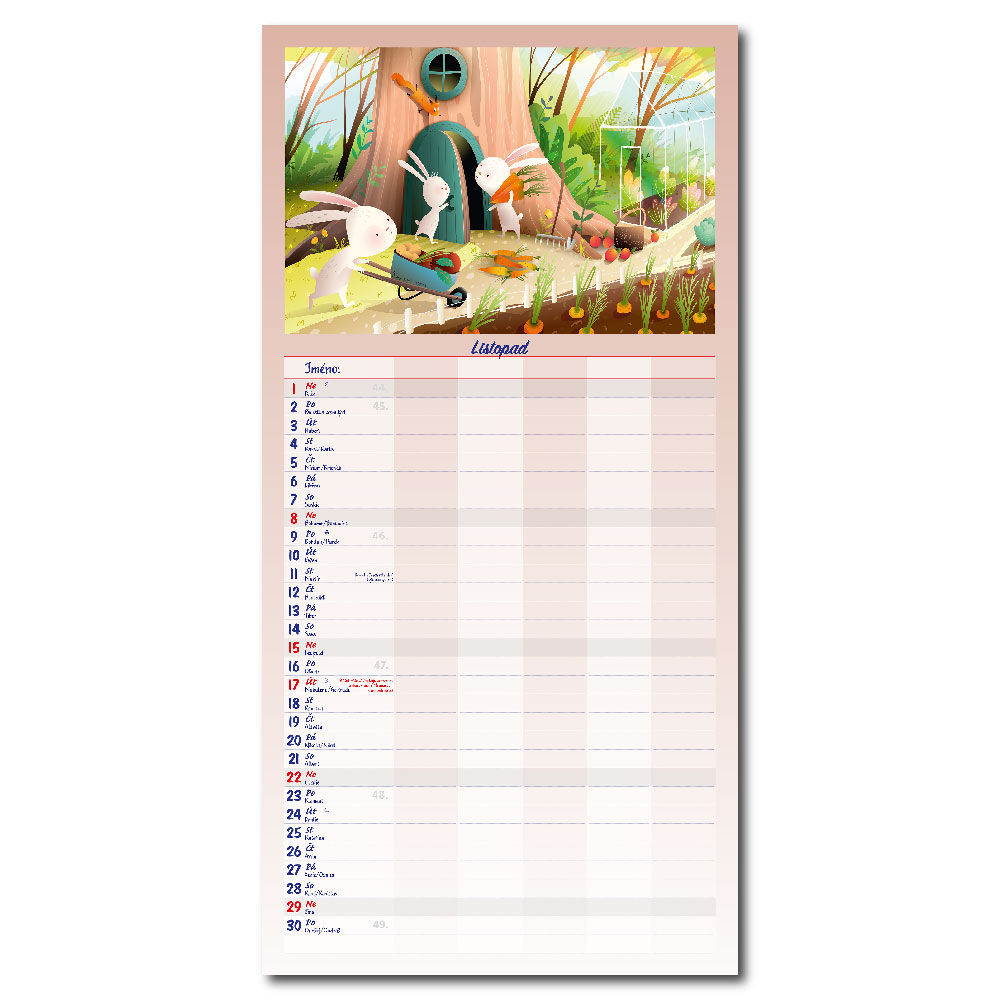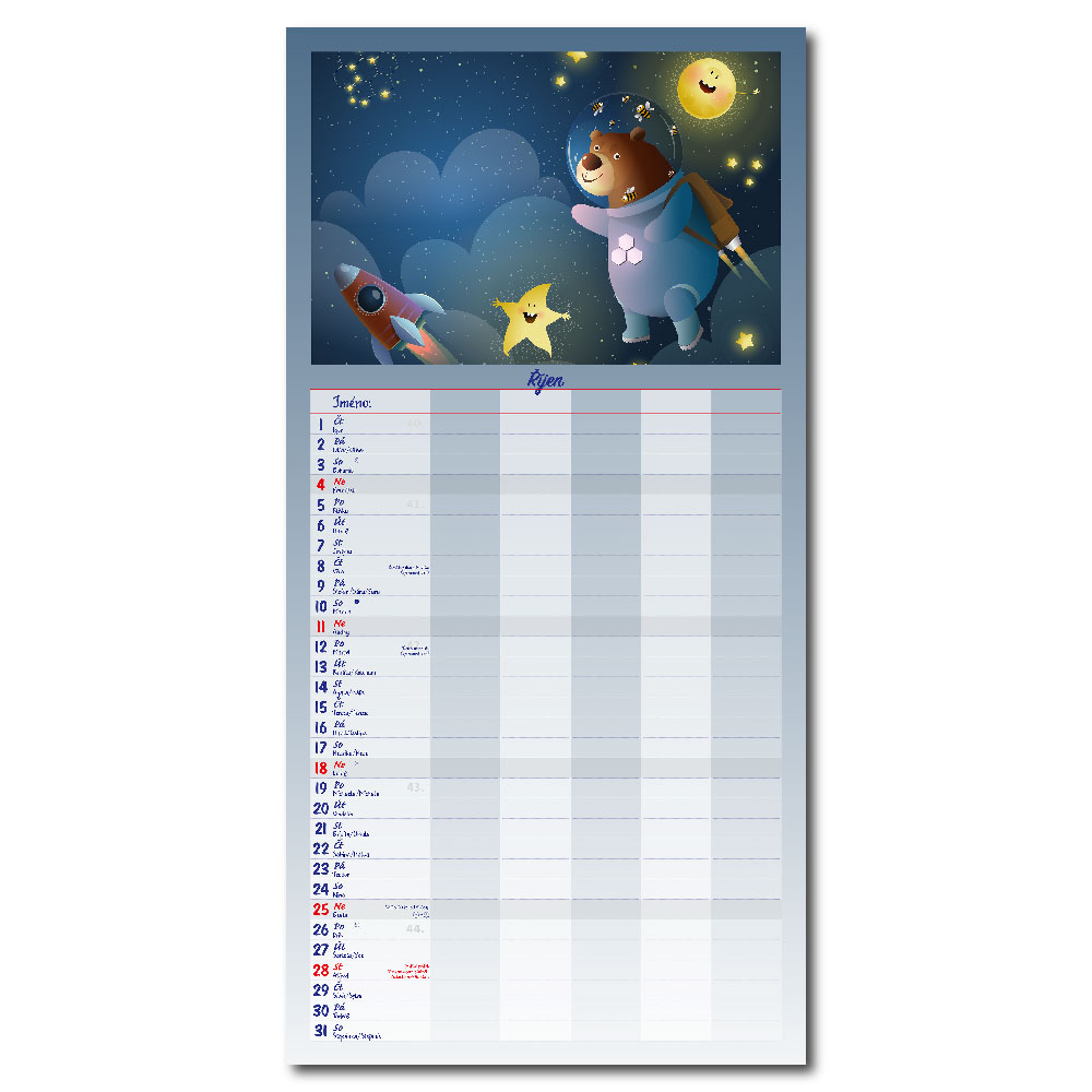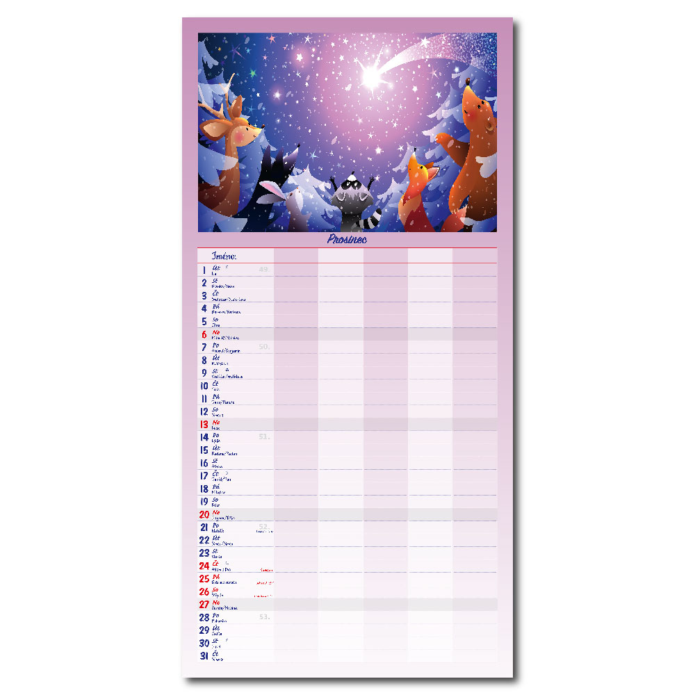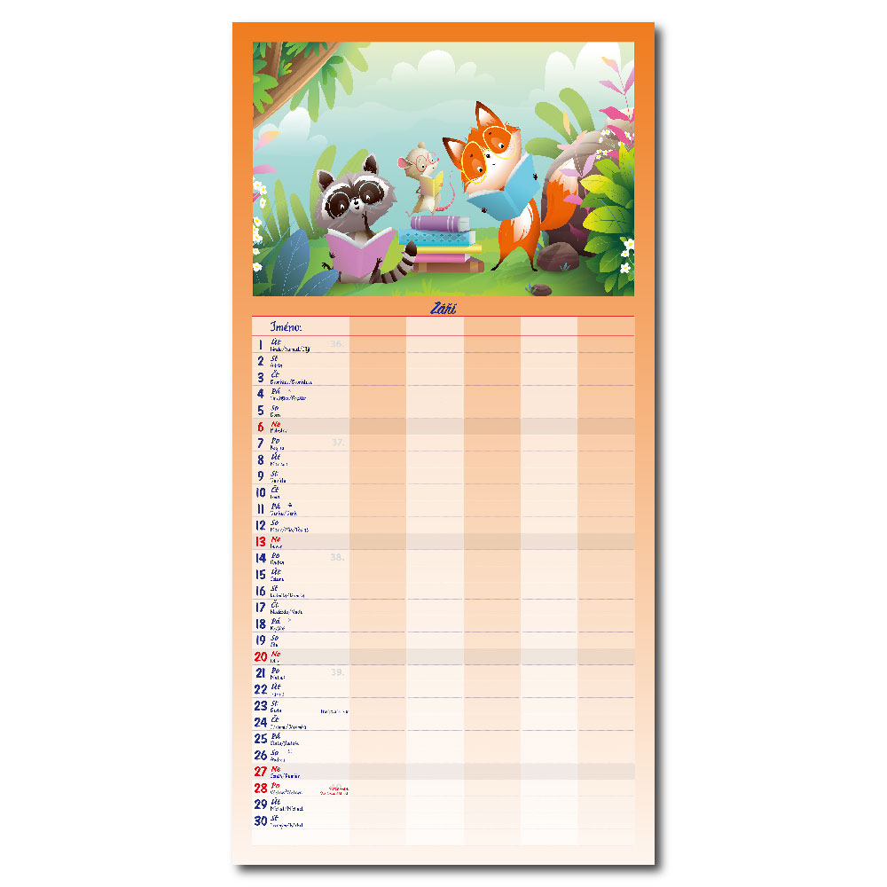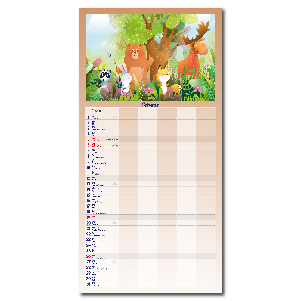 Rozměr: 31,5 x 63 cmKalendárium: české měsíční jmennéVazba: Twin wireRozsah kalendáře: 14 listů