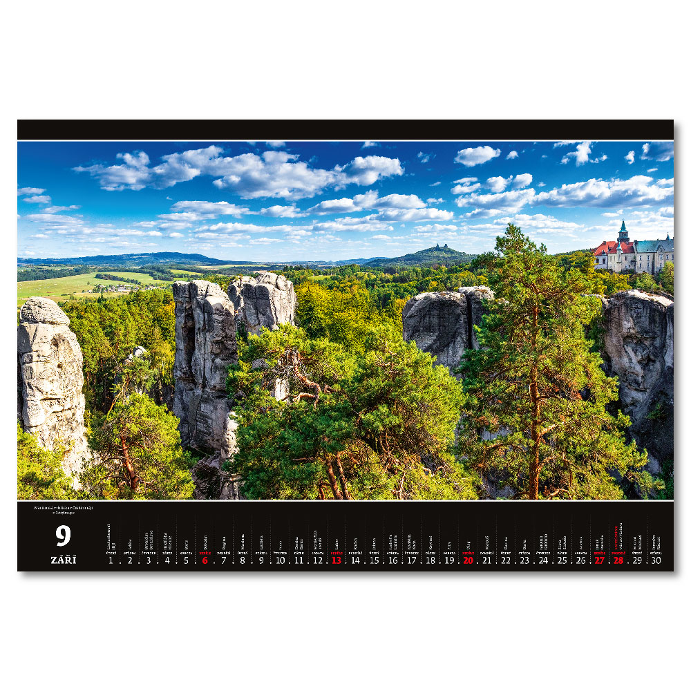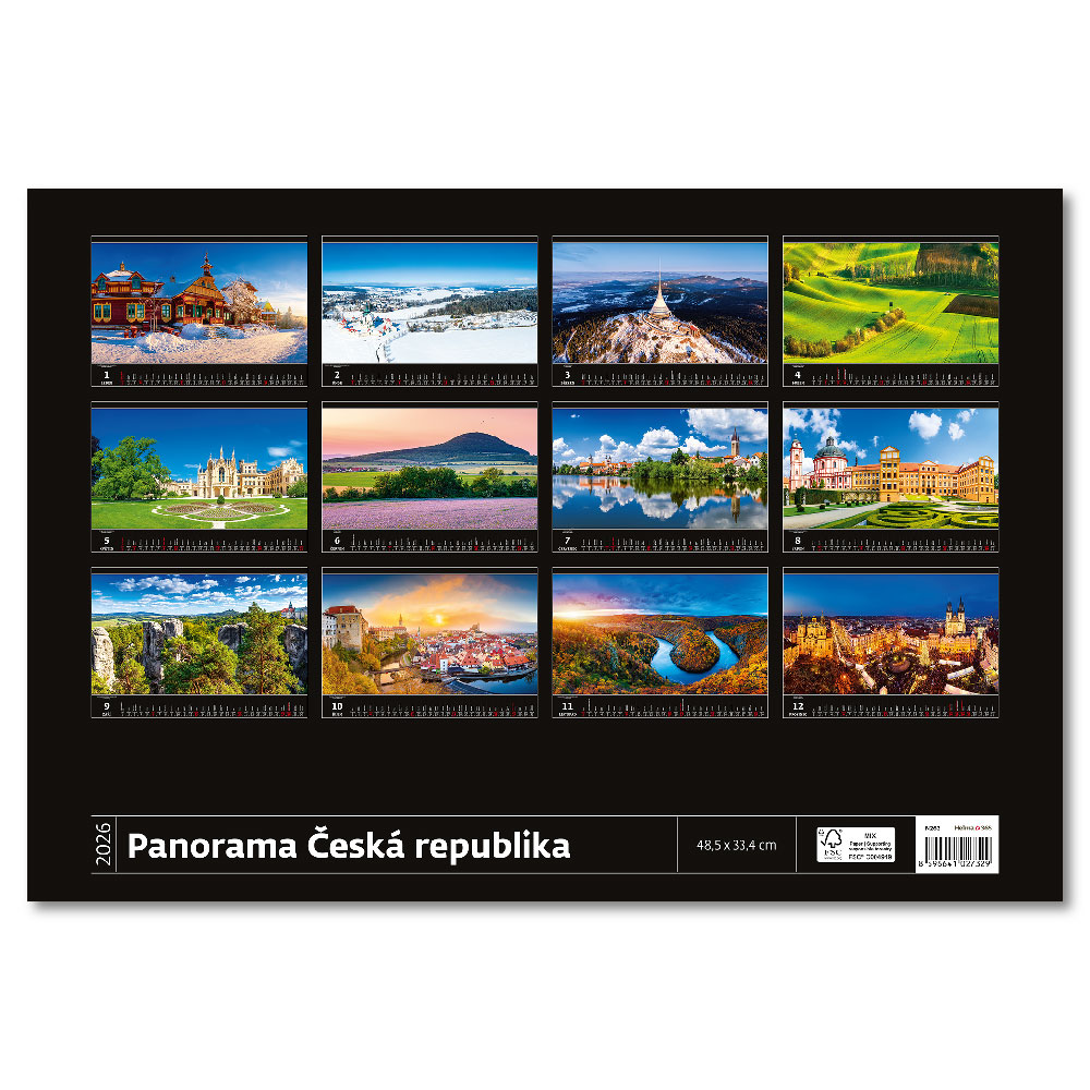 Rozměr: 48,5 x 33,4 cmKalendárium: měsíční české jmennéRozsah kalendáře: 14 listůVazba: Twin wirePlocha pro potisk: 48,5 x 7 cm