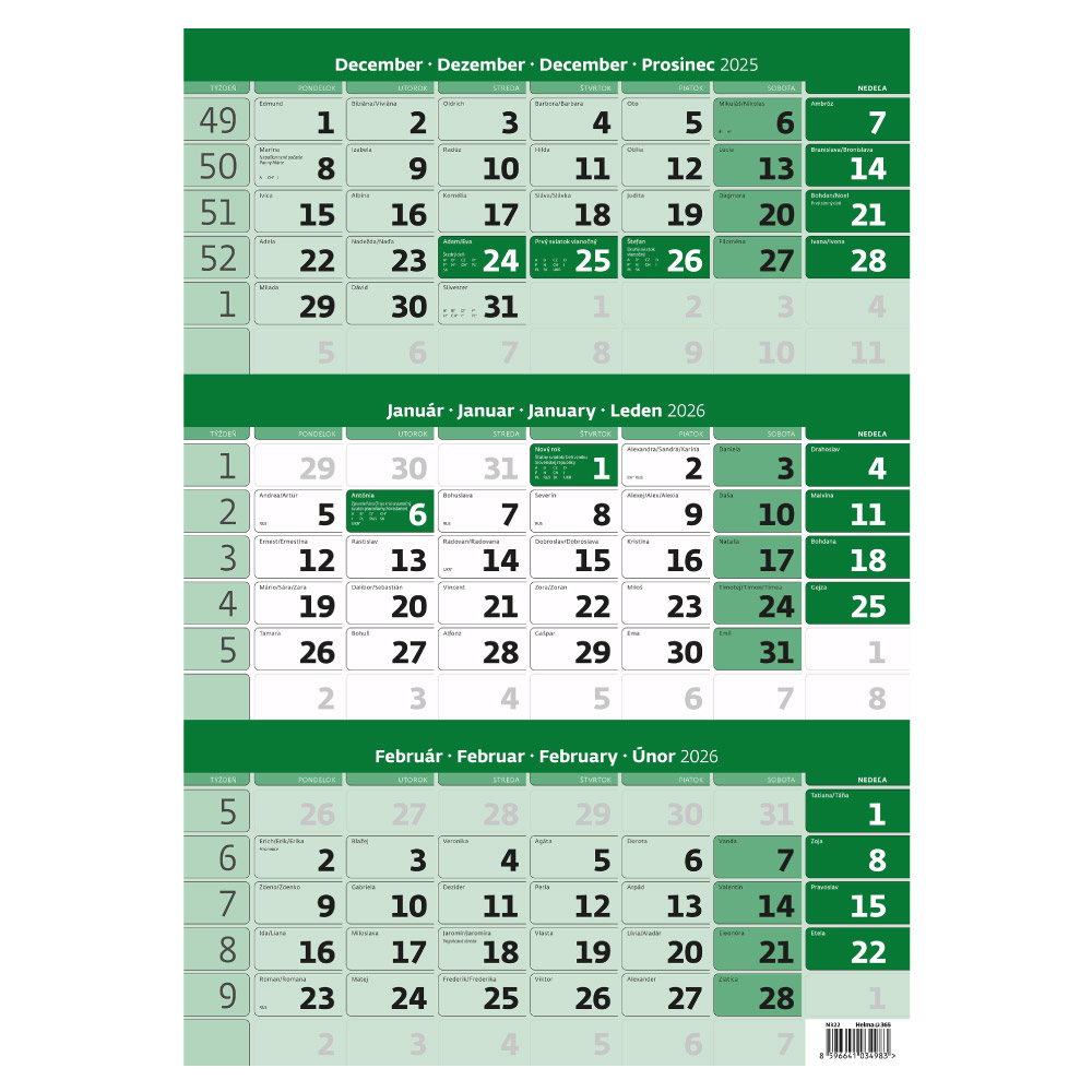 Wall Calendar 2026 - Threemonths Calendar green