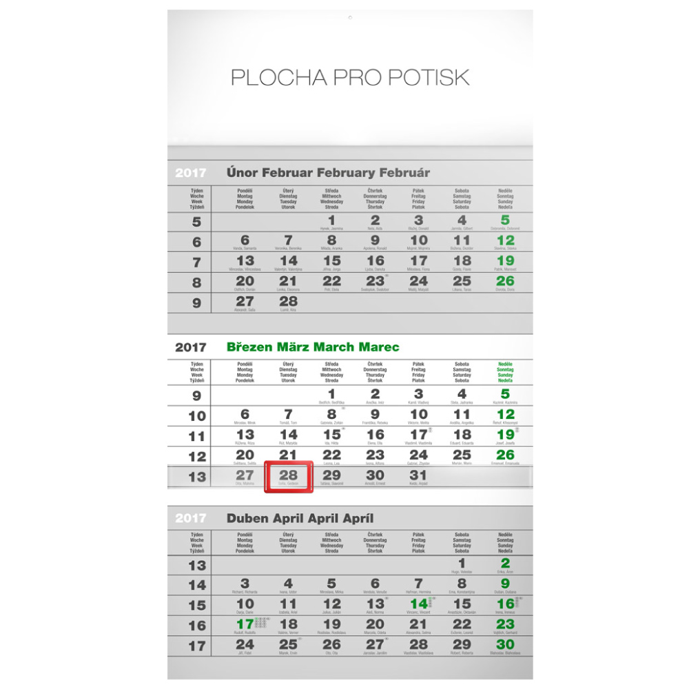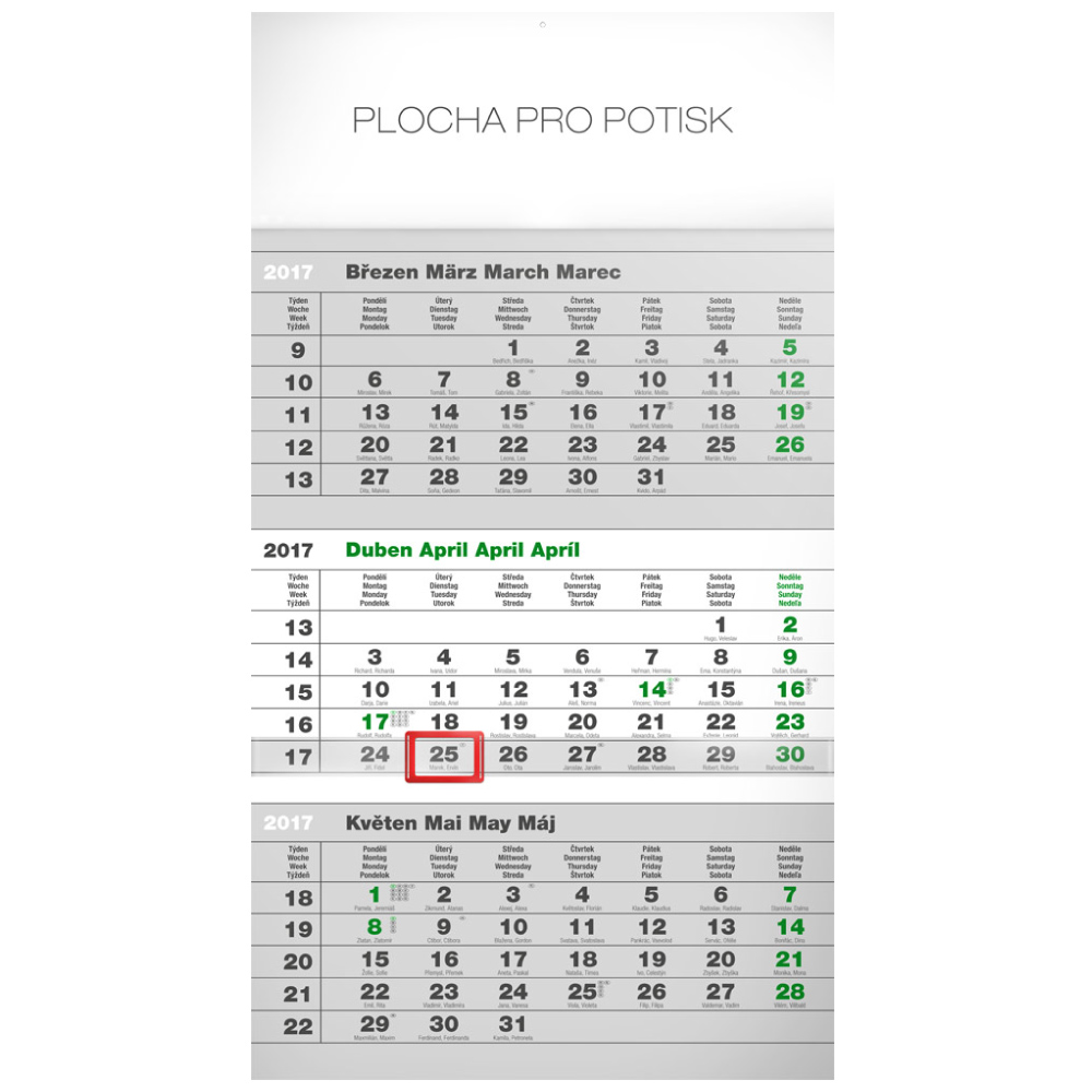 kalendárium - 4jazyčné (CZ, SK, GB, DE)