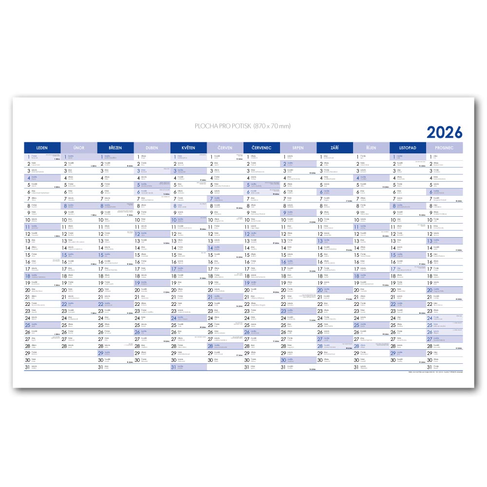 Wall planning map 2026 CZ - 100 x 63 cm - blue