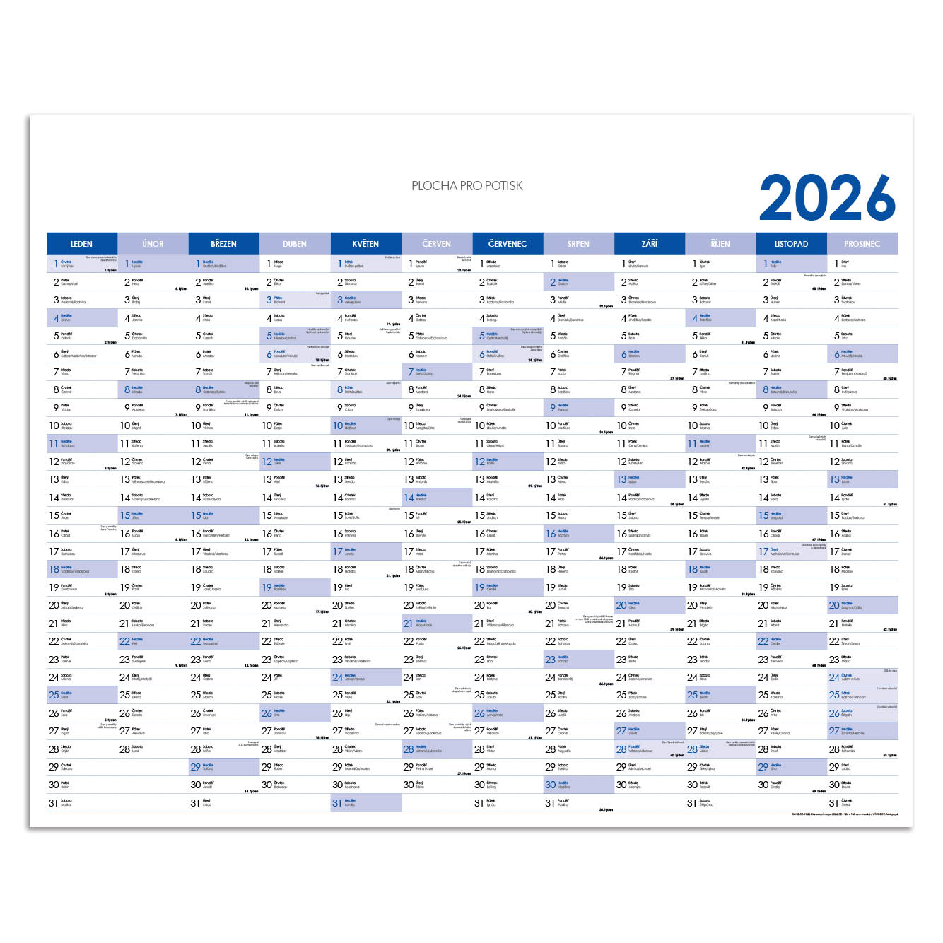 Wall planning map 2026 CZ - 124 x 100 cm - blue