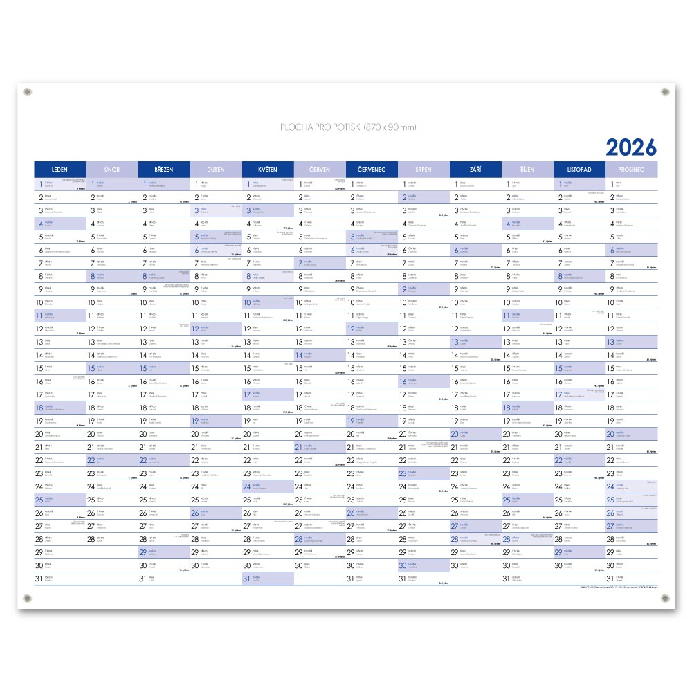 Wall planning map 2026 CZ with eyelets for hanging - 100 x 80 cm - blue