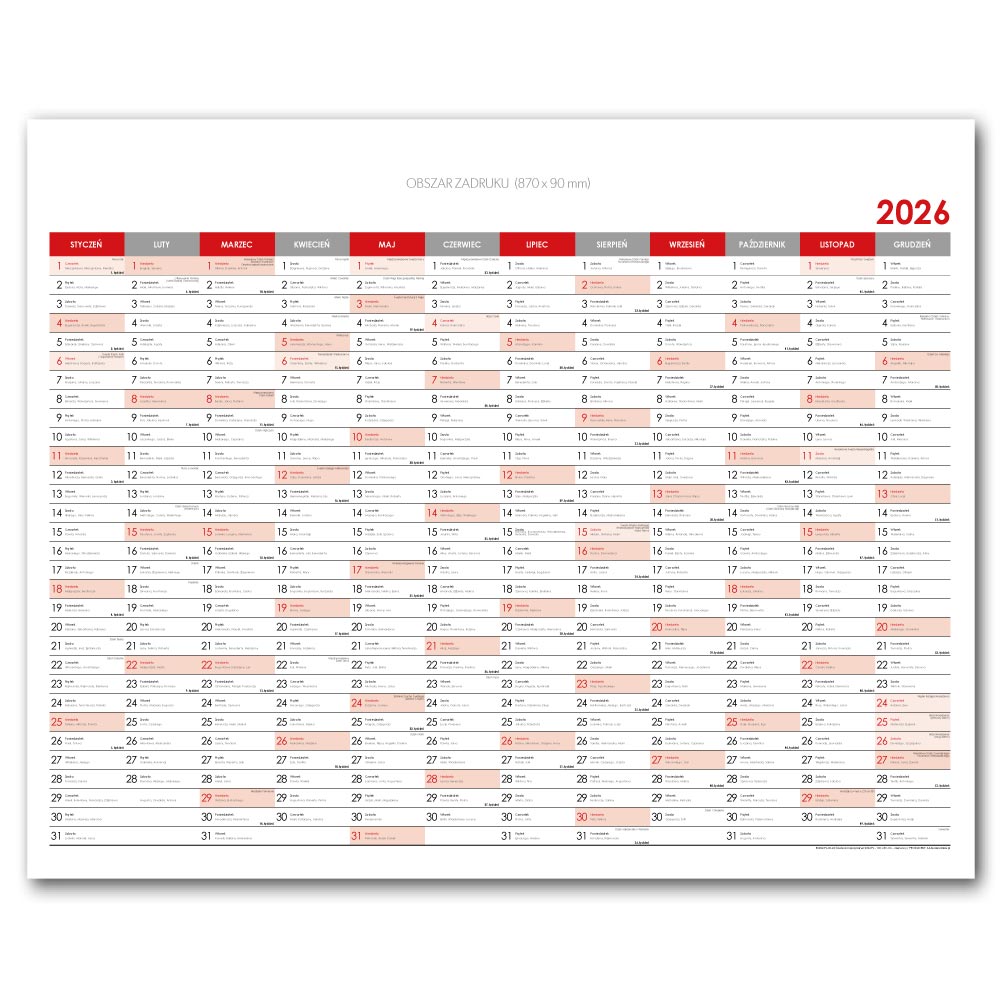 Rozměr: 100 x 80 cm Barva: červená Materiál: omyvatelné PVC - banerovina Kalendárium: polské roční jmenné Rozsah: 1 list Mapu je možné nechat plnobarevně potisknout. Plocha pro potisk: 87 x 9 cm.