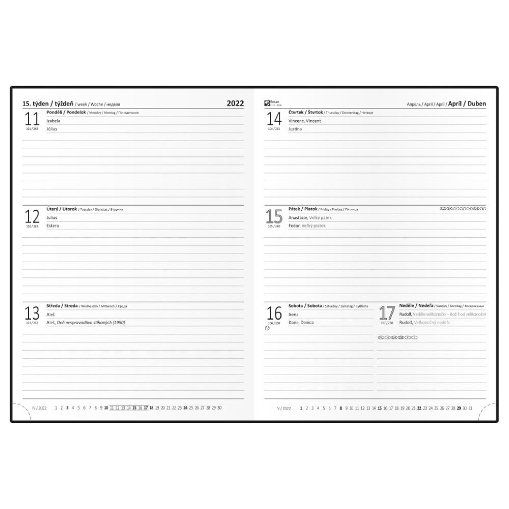 roční plánovací kalendář CZ/SK, místo na poznámky.