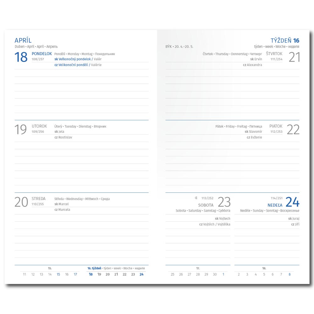 poznámky, daňový kalendář, důležitá telefonní čísla.
