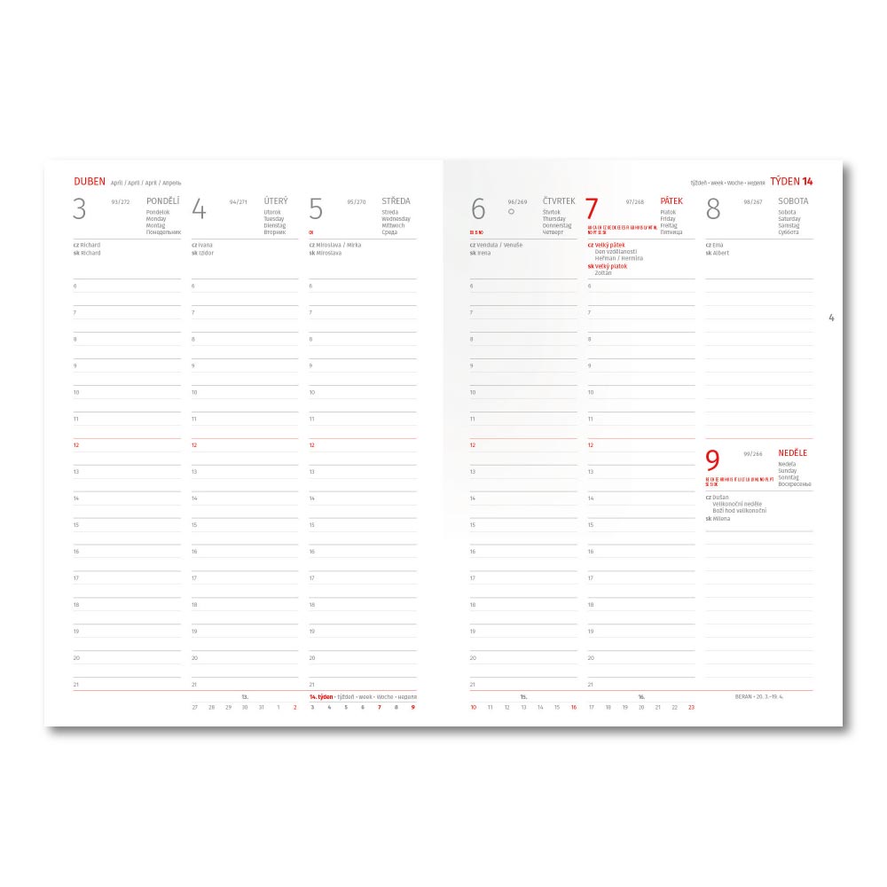poznámky, daňový kalendář, důležitá telefonní čísla.