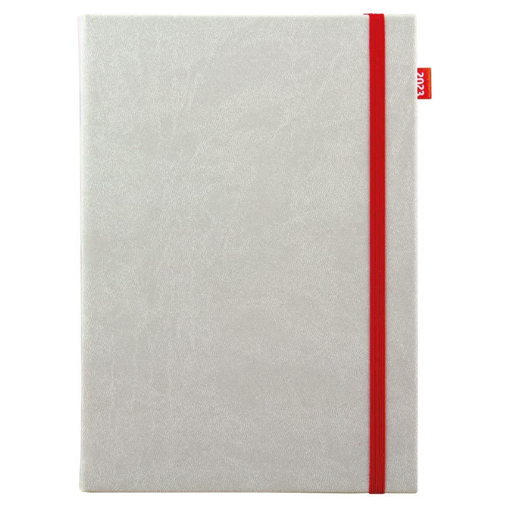 Součástí diáře poutko na propisku a gumička na zavírání.