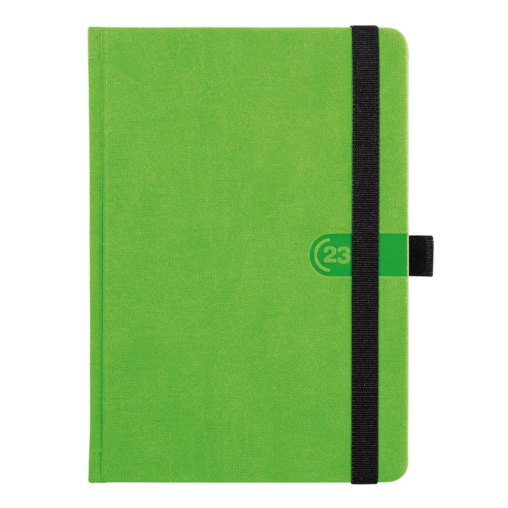 Součástí diáře je poutko na propisku a gumička na zavírání.