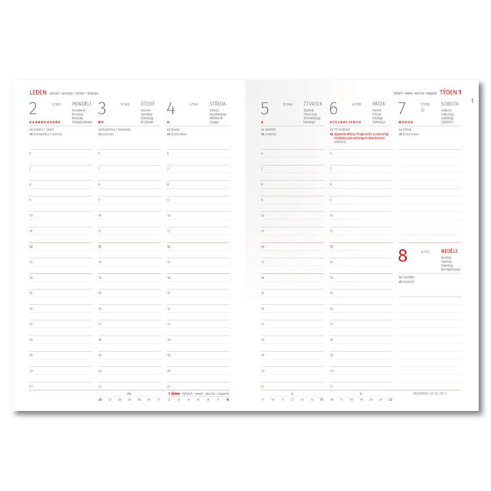 Kalendárium: české týdenní + 97 stran pro poznámky z druhé stany