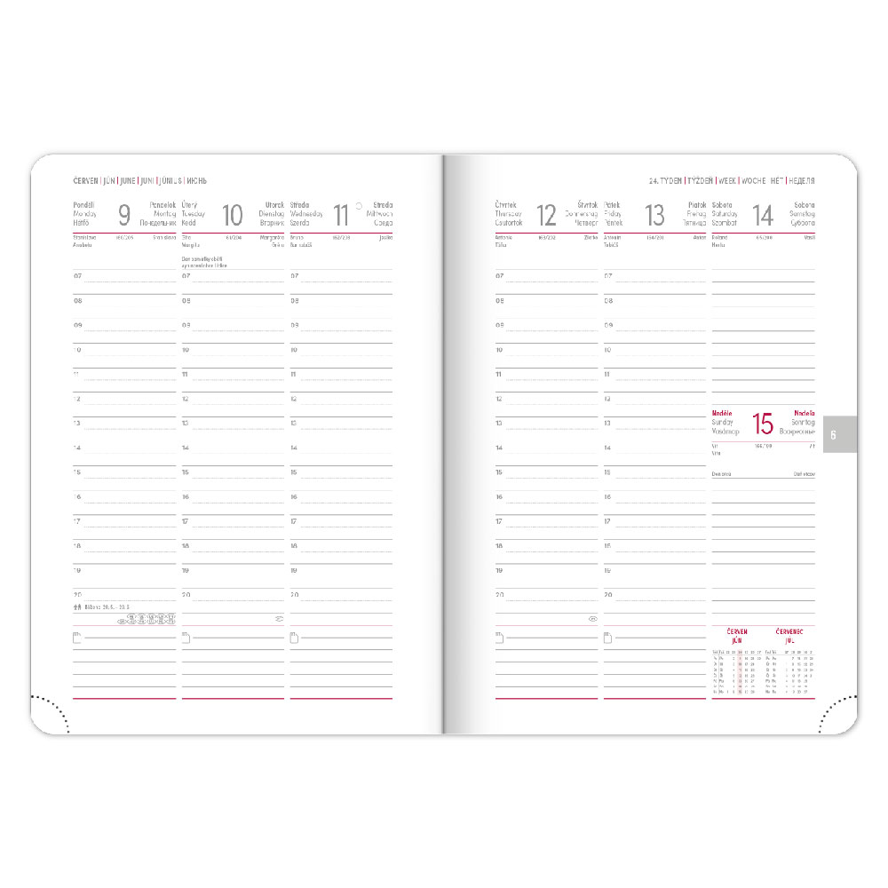 Kalendárium: 6jazyčné týdenní od prosince 2024 (CZ, SK, GB, DE, HU, RU)