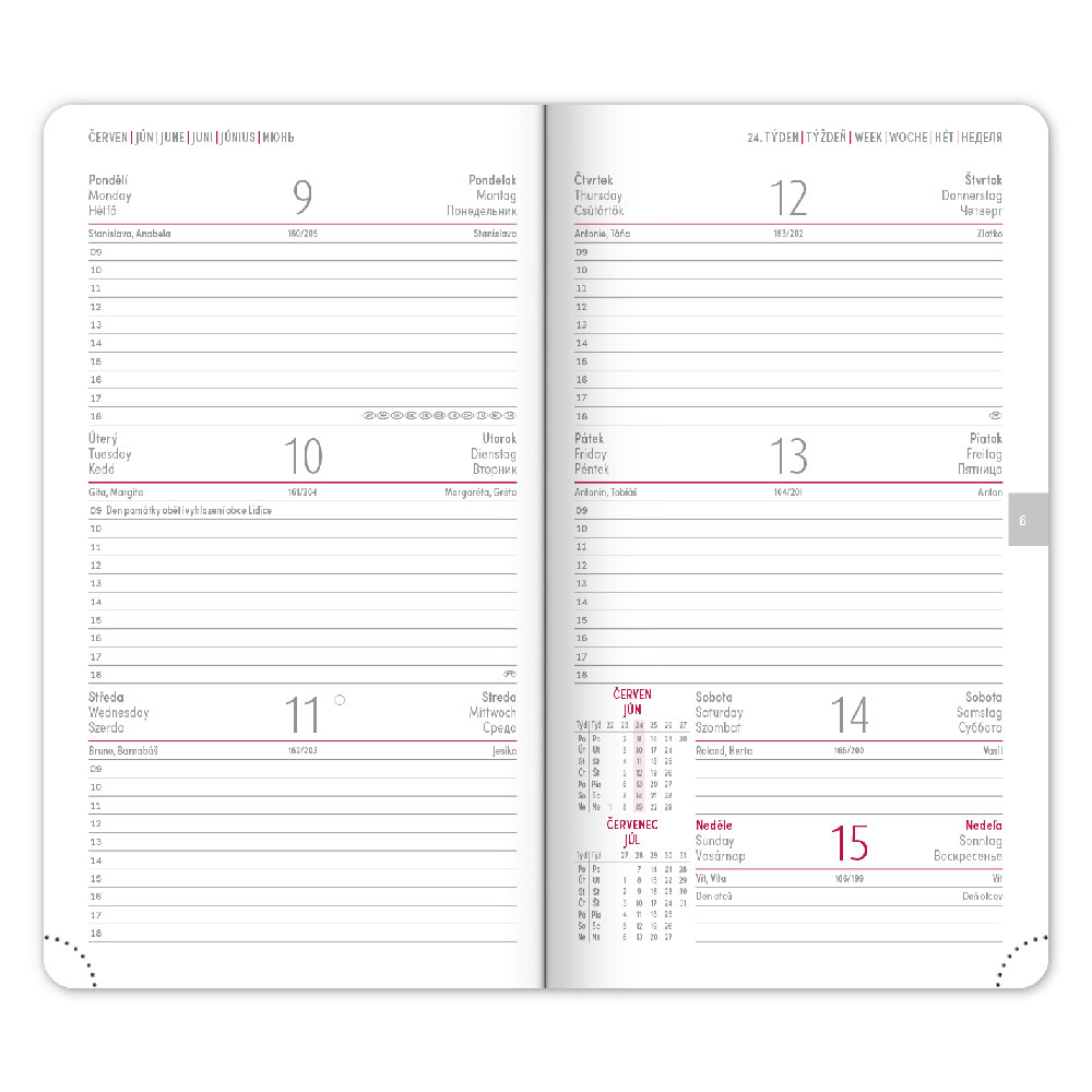 Kalendárium: 6jazyčné týdenní od prosince 2024 (CZ, SK, GB, DE, HU, RU)