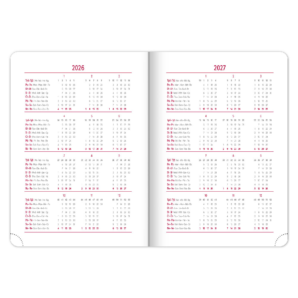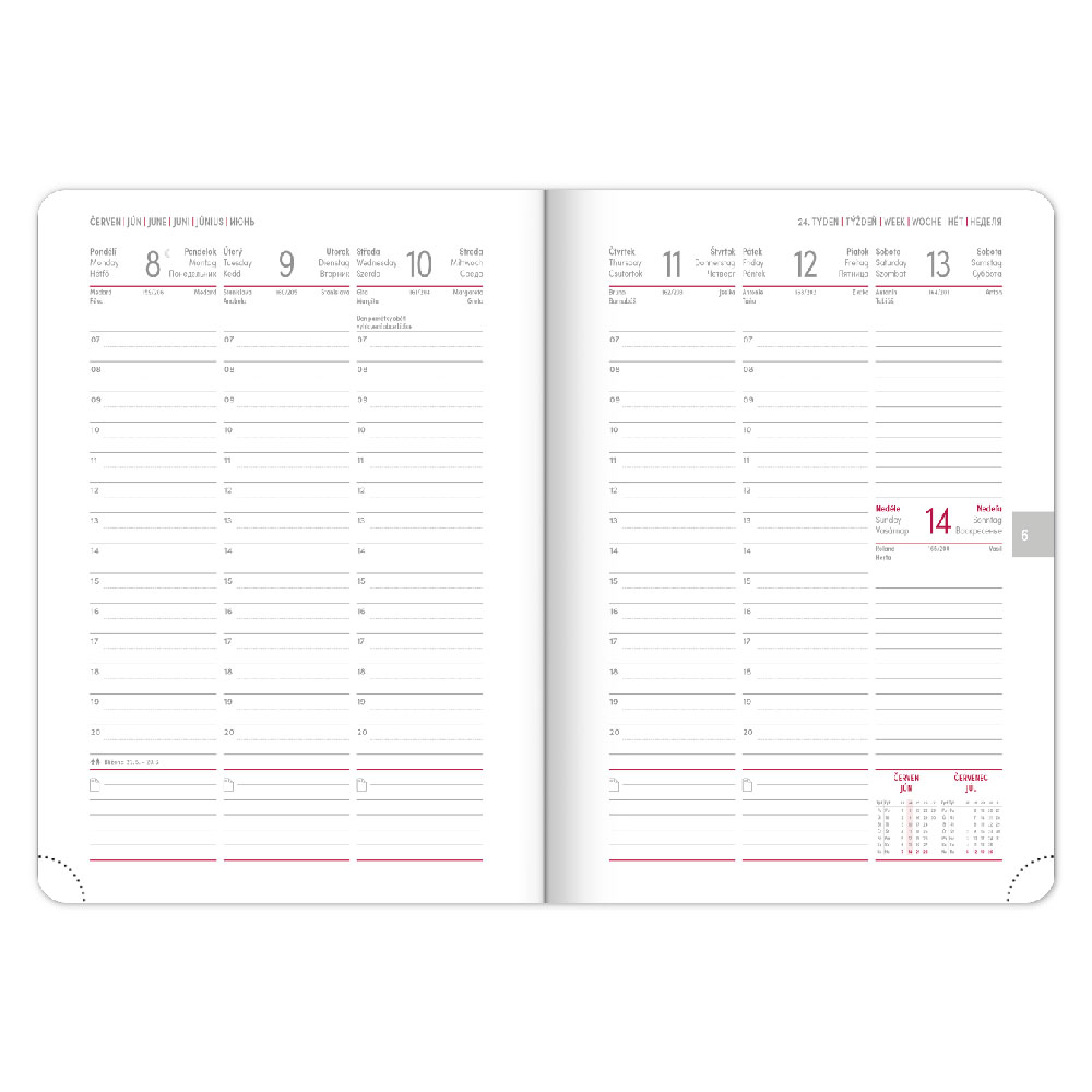 Kalendárium: 6jazyčné týdenní (CZ, SK, EN, DE, HU, RU)