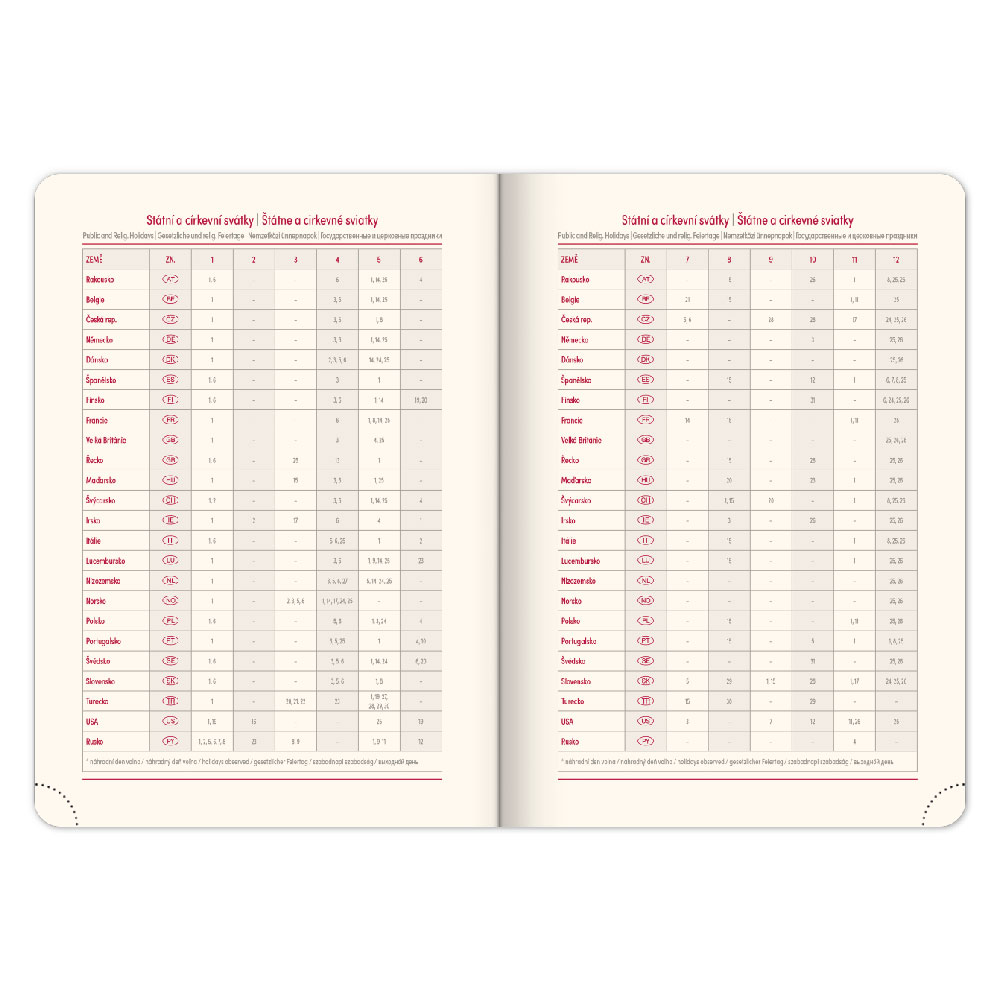Kalendárium: 6jazyčné týdenní (CZ, SK, EN, DE, HU, RU)