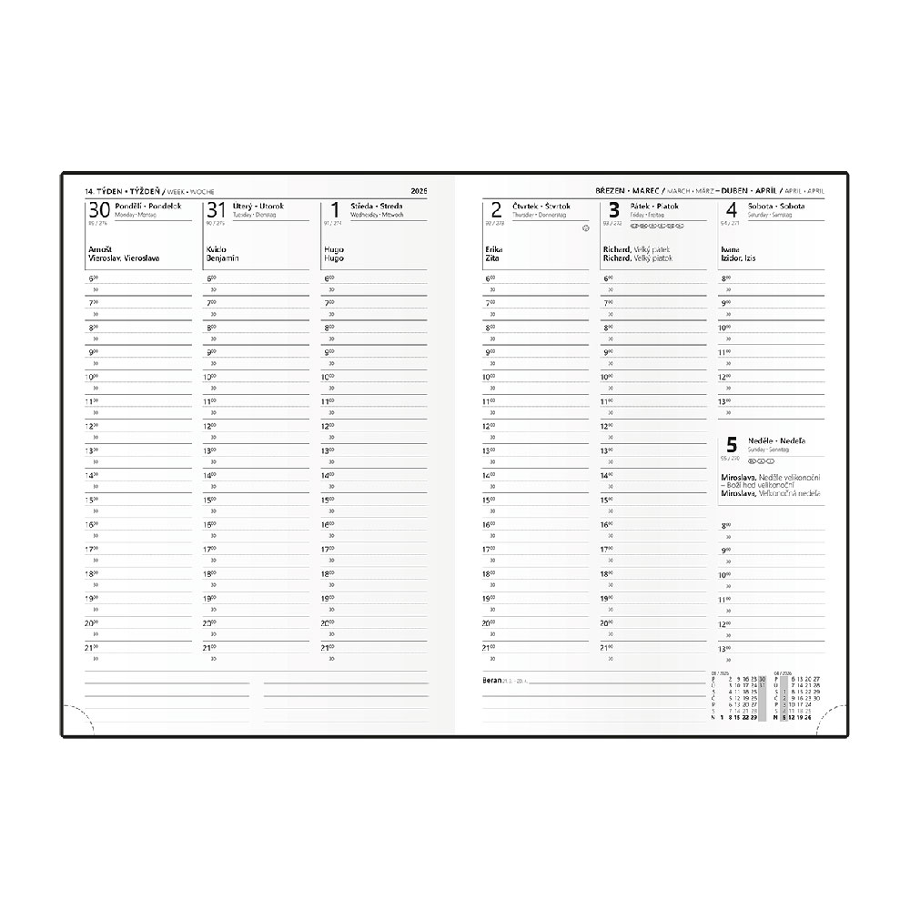 roční plánovací kalendář CZ/SK, místo na poznámky.
