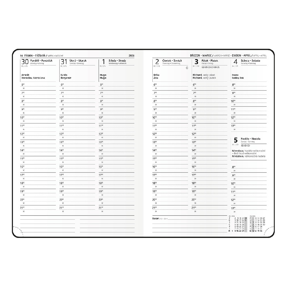 Weekly diary 2026 Oskar Luxi A5 - burgundy