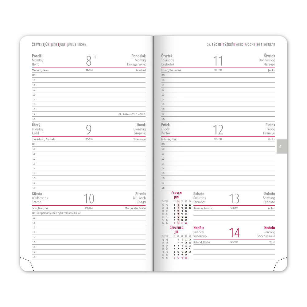 Kalendárium: 6jazyčné týdenní (CZ, SK, EN, DE, HU, RU)