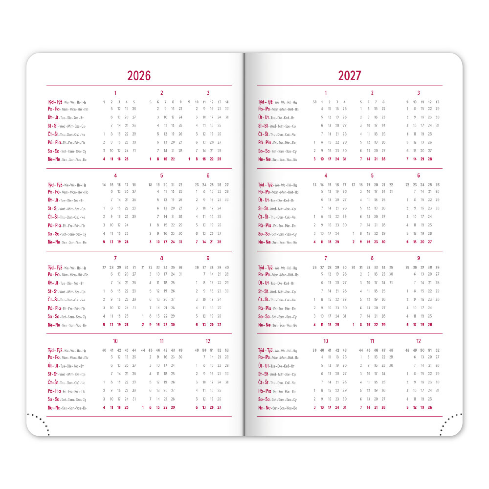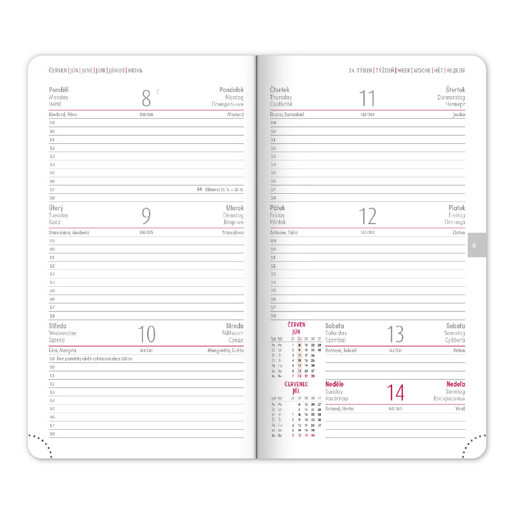 Kalendárium: 6jazyčné týdenní (CZ, SK, EN, DE, HU, RU)