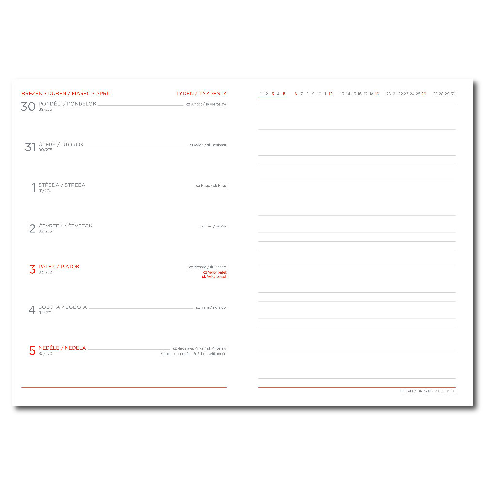 Kalendárium: české týdenní + jedna volná strana na poznámky