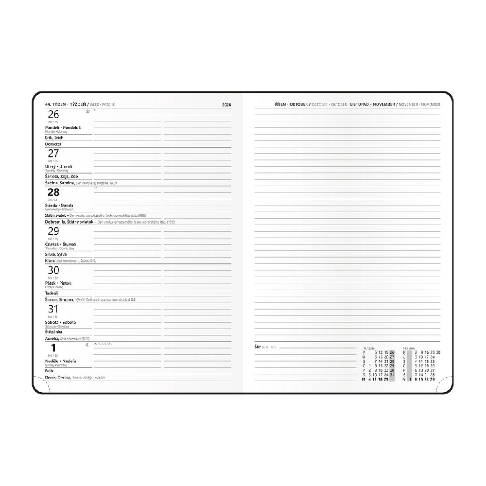 roční plánovací kalendář CZ/SK 2026, místo na poznámky.