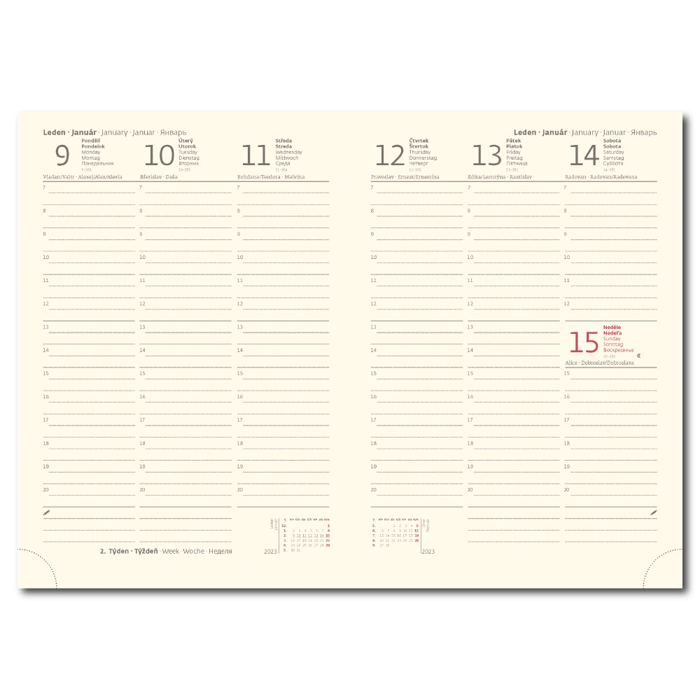 mezinárodní svátky, roční výhled, týdenní layout, adresář,